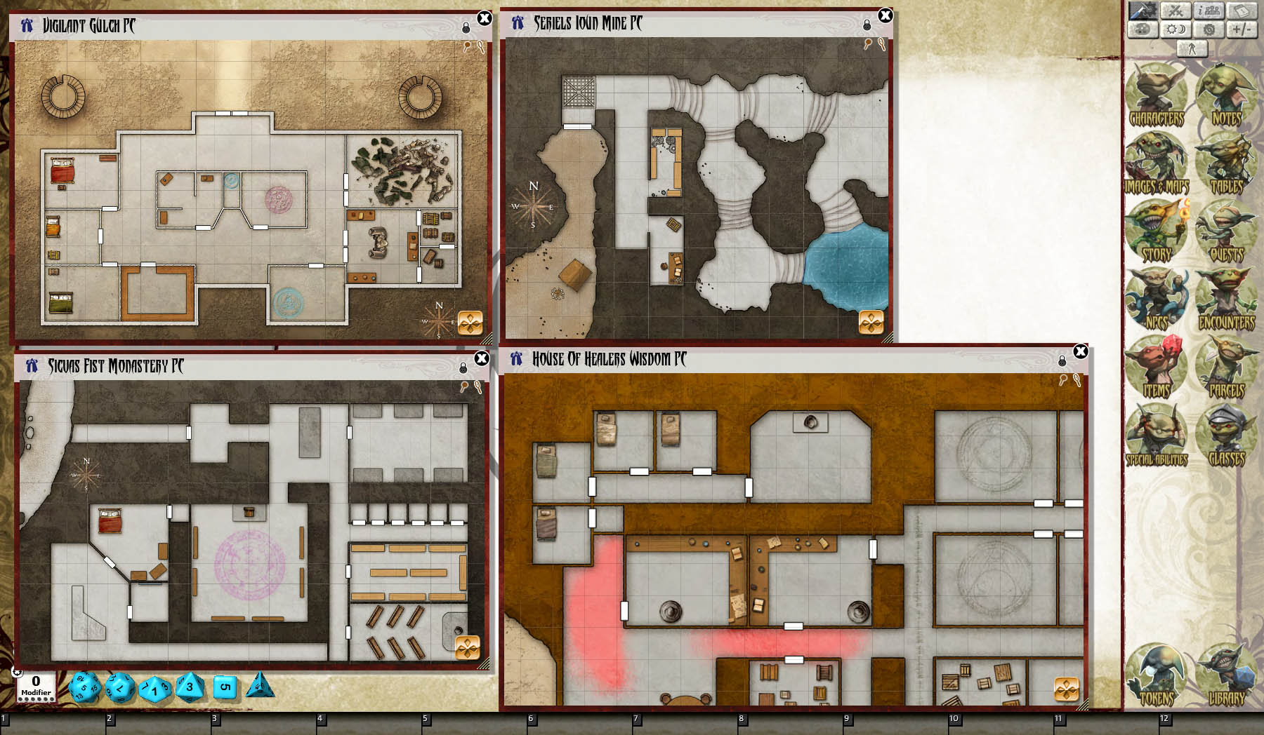 • Tokens for each encounter are all pre-placed in starting locations on the map. You can edit these on the fly.
