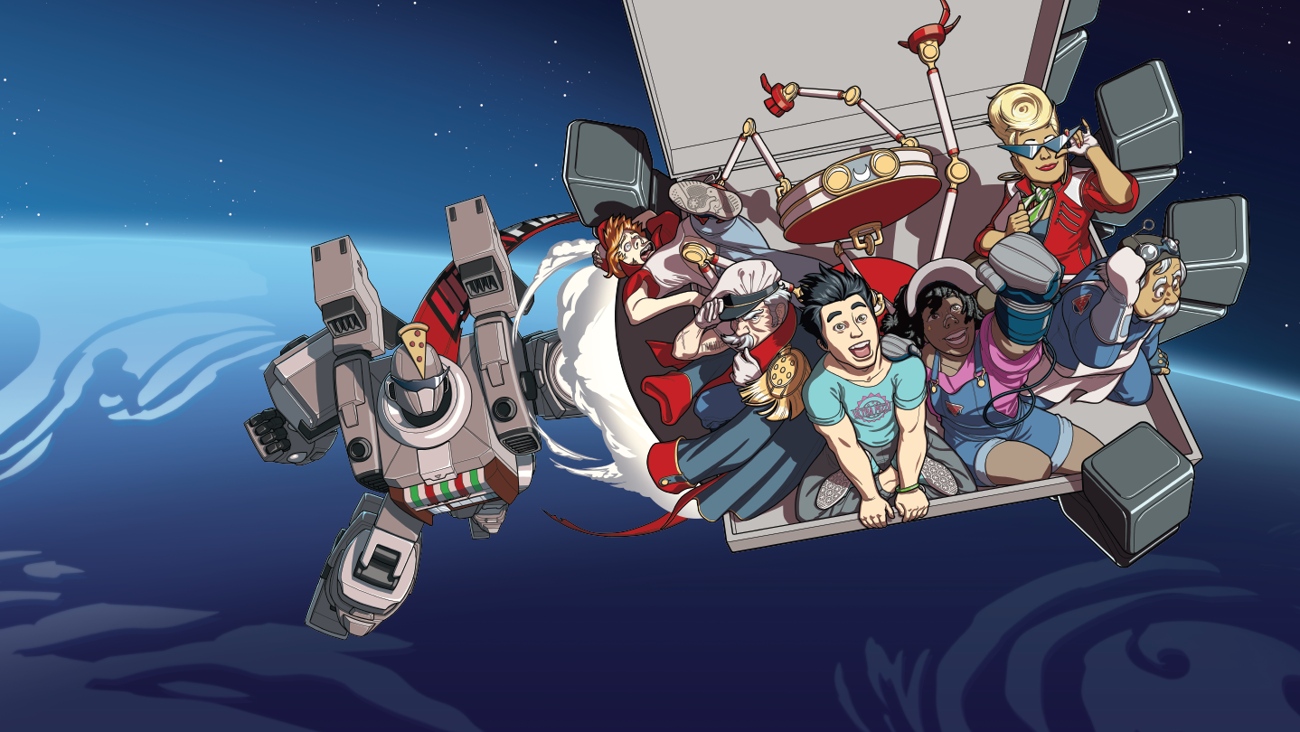 Pizza! Giant robots! Lasers, destruction, evil cyborgs! Arcade action in a fully customizable mech with a pizzeria in its chest.