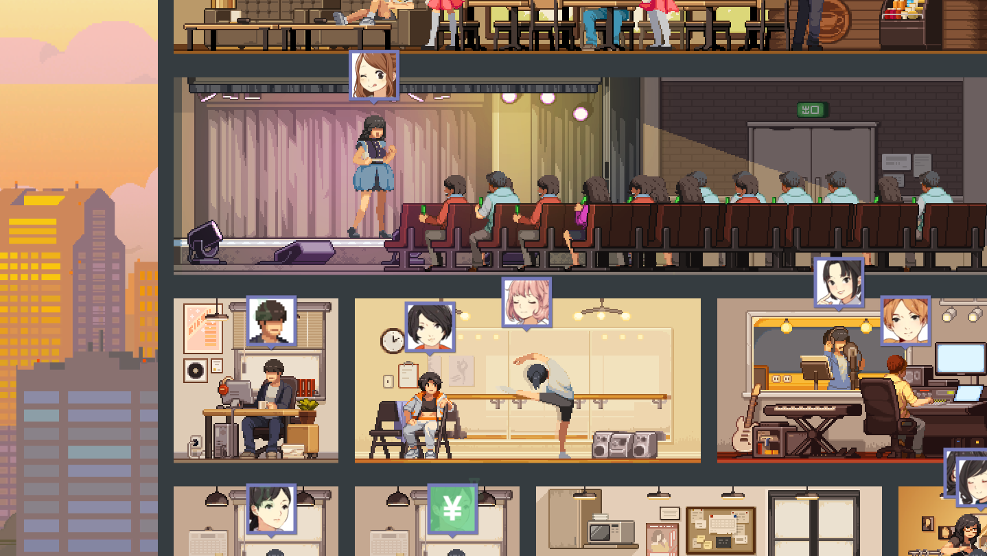 You take on the role of manager at a small (but growing!) talent agency. As you cultivate and train the newest generation of young pop stars, you'll have to decide who to hire and who to fire, who gets promoted when things go well and who gets reprimanded when things get sour. The personal lives of these young celebrities are a part of your business, and the life of a pop star isn't always a happy one. Their crowning personal achievements can be your greatest commercial successes, but their emotional meltdowns and PR nightmares can spell financial disaster for your company.