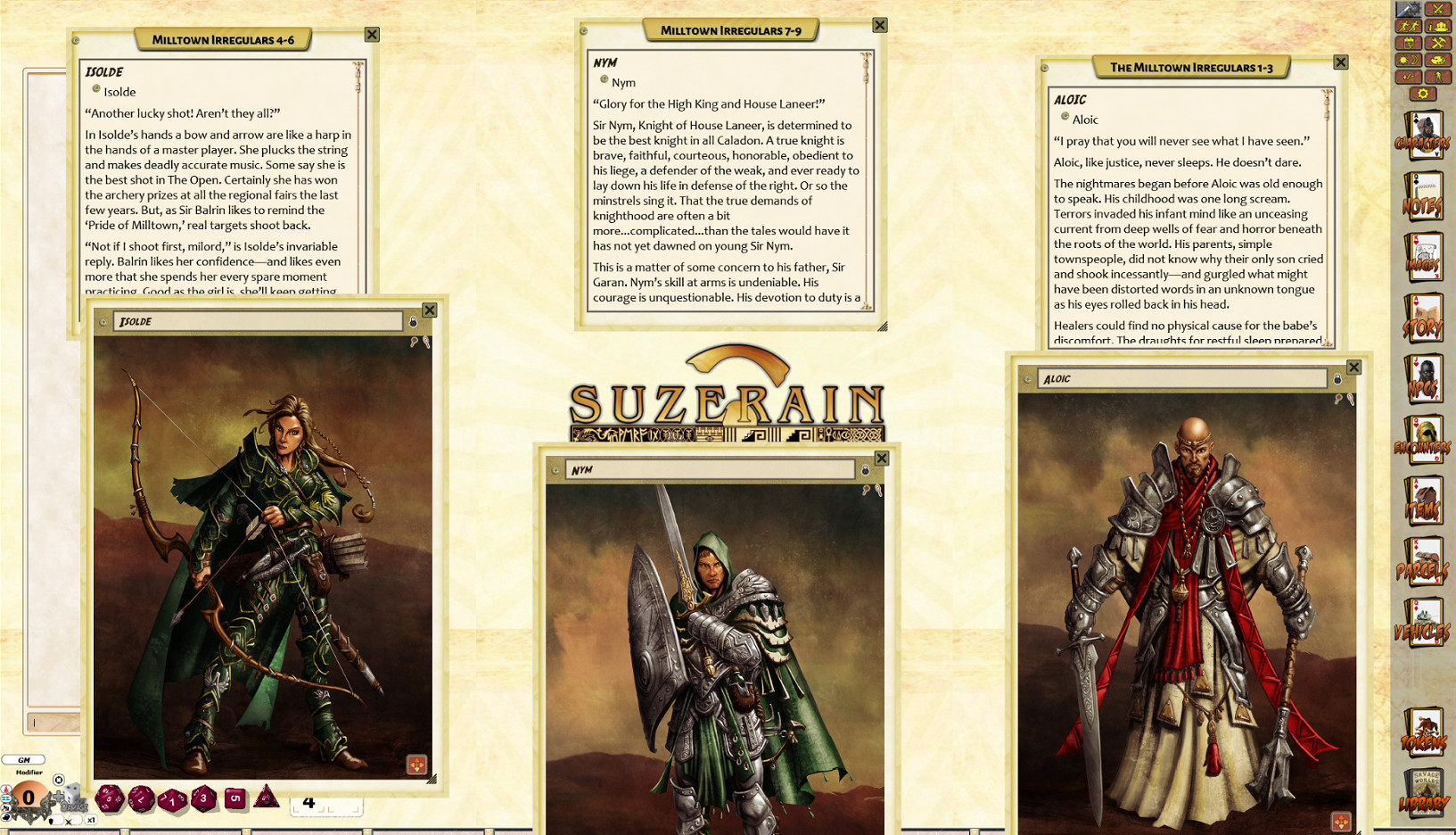 Product Contains: 9 characters with complete background descriptions, artwork, and stats for Novice and Heroic versions of the characters. This product is best used with a copy of Savage Suzerain and Caladon Falls.