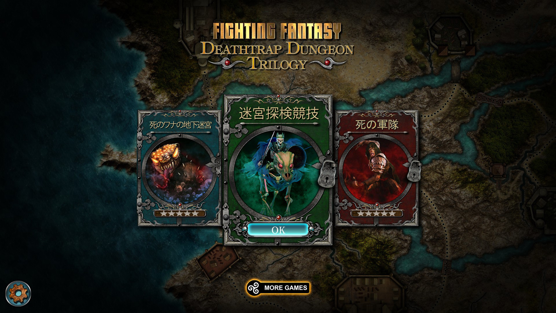 イアン・リビングストンによる古典的ファイティング・ファンタジーのゲームブック3冊、『デストラップ・死の罠ダンジョン』、『チャンピオンのトライアル』、『死の軍隊』をプレイしよう。