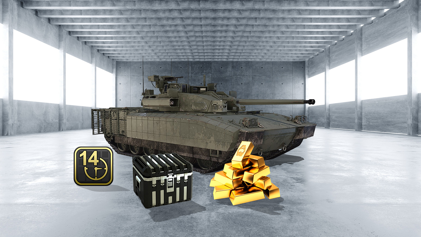 This bundle contains the Leclerc T40 TD, 5 Platinum Loot Crates, 1.000 Gold and 14 days of Premium Time. In Armored Warfare, the Leclerc T40 is a Tier 9 Premium Tank Destroyer. It offers you a combination of a durable hull, rapid-fire 40mm automatic cannon and, most importantly, the Javelin missile system. Simply right-click the target, wait until it becomes locket and fire the Javelin ATGM – it will home itself on the target, attacking its weak roof armor. Thanks to this ability, the Leclerc T40 is one of the most destructive vehicles in the game.