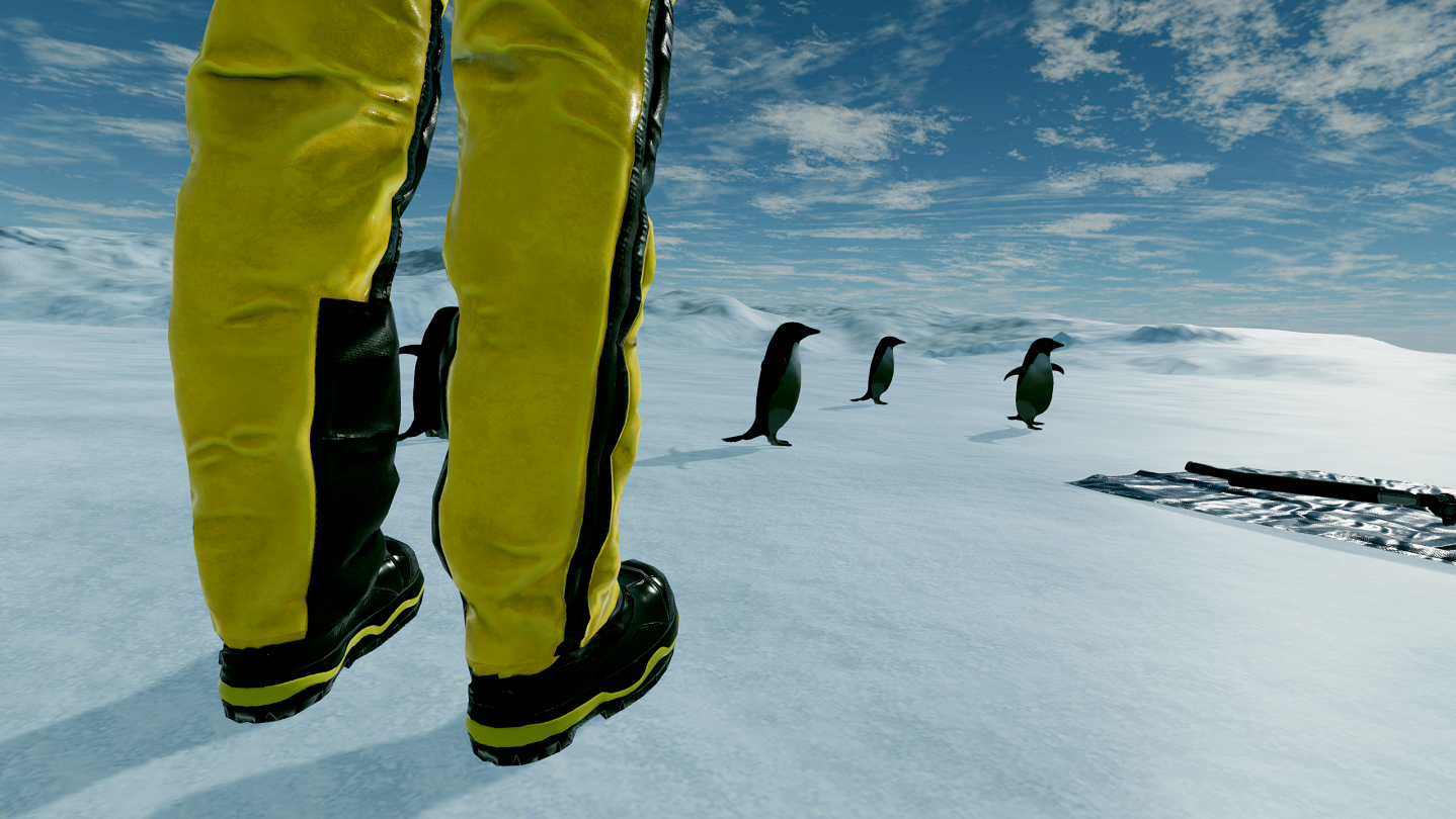 First scene will be an Antarctic experience which will allow students to put on the virtual reality headset and enter the world of the Antarctic. The scenario begins where scientist will introduce the topic and explain the reasoning for their presence, their significance with the ecology, and what are some of the activities that take place.