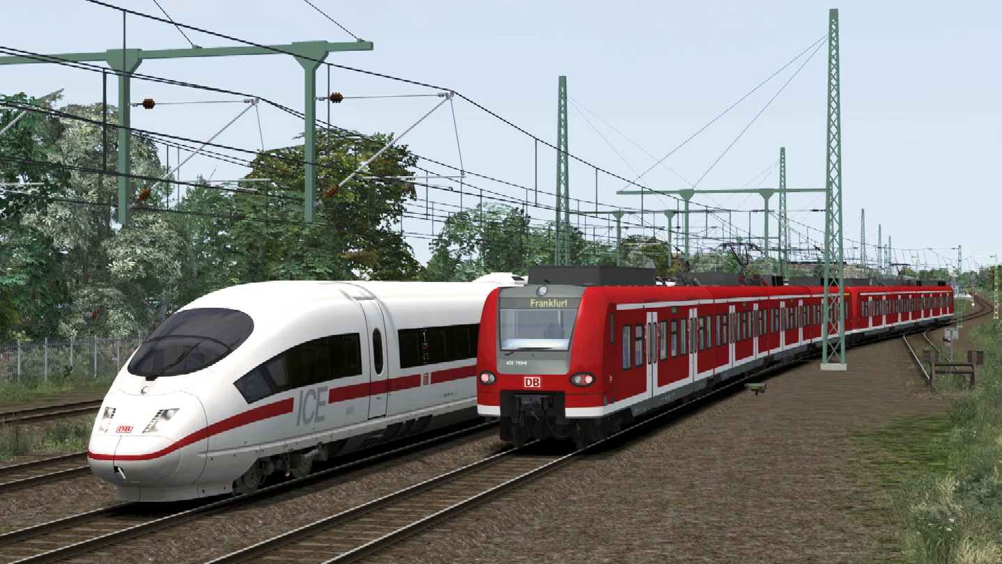 The Frankfurt High Speed: Frankfurt – Karlsruhe Route Extension includes seven career scenarios featuring Deutsche Bahn ICE and S-Bahn passenger activities as well as a selection of railfan scenarios.