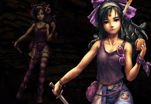 Some say she is Lemeza's wife's daughter from a previous marriage, while others believe she's Professor Shawn's illegitimate child. Either way, she is a Kosugi; that much is clear. She travels to La-Mulana to make her archaeological debut after accepting Xelpud's request to search the ruins.