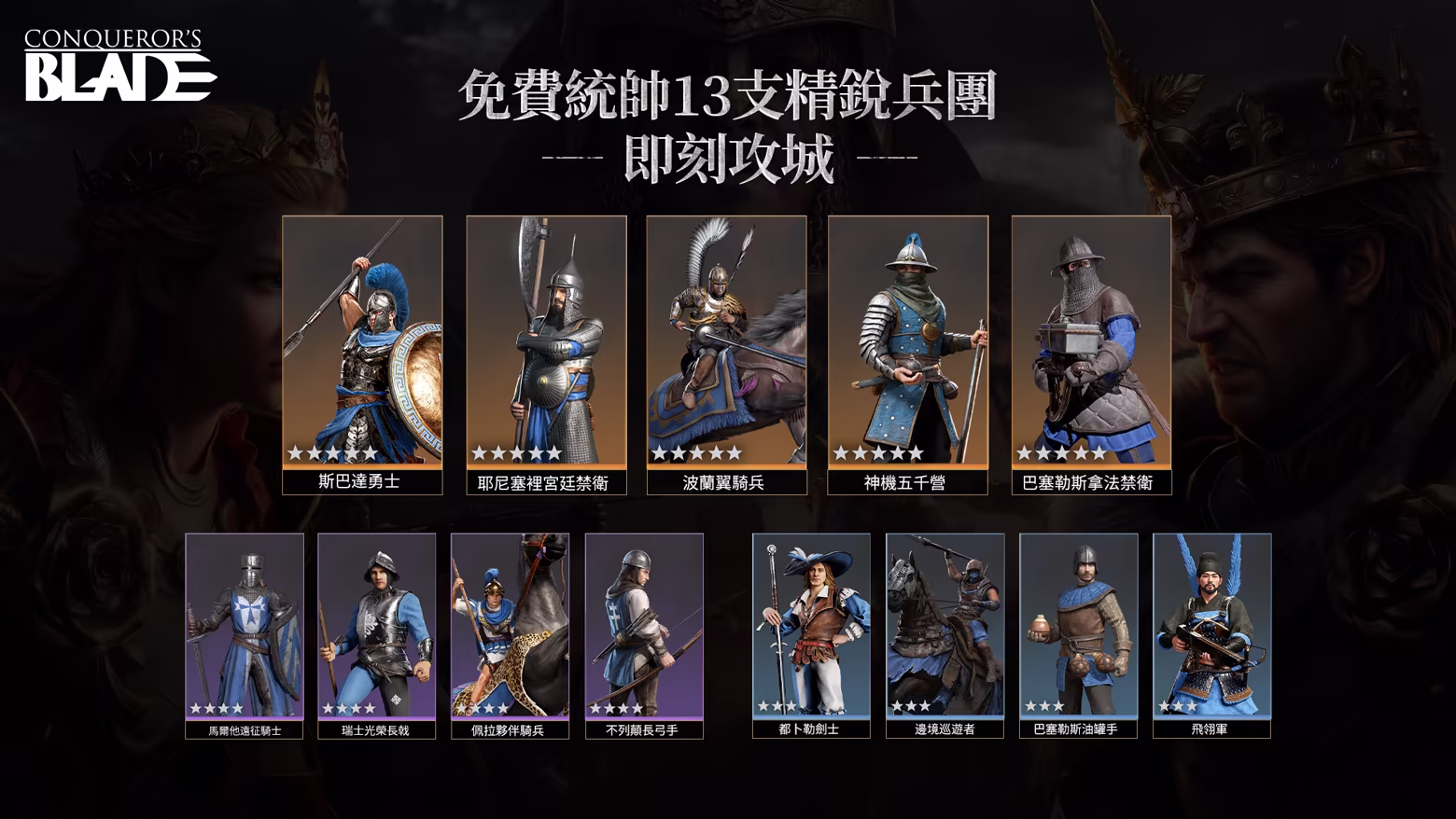 • 雙 4 星·新兵團: 首個可下馬作戰騎兵「白玫瑰親衛騎士」& 拒馬自癒步兵「紅玫瑰鉤鐮衛隊」。
