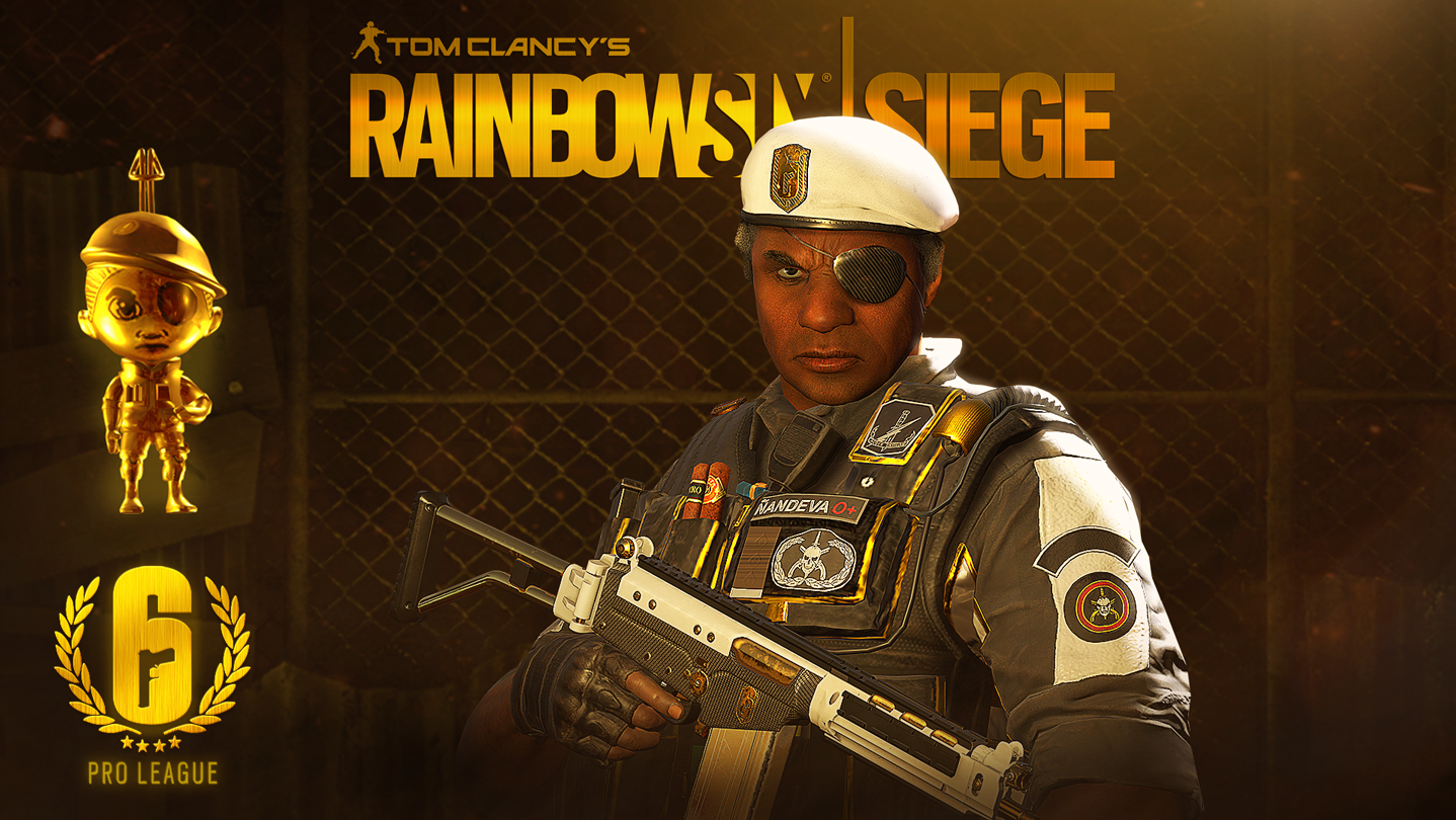 Celebrate the Rainbow Six Siege Pro League with Capitão's Gold Chibi charm, Celerity weapon skin for the PARA-308, Roman Catalyst headgear, and Space Age uniform.