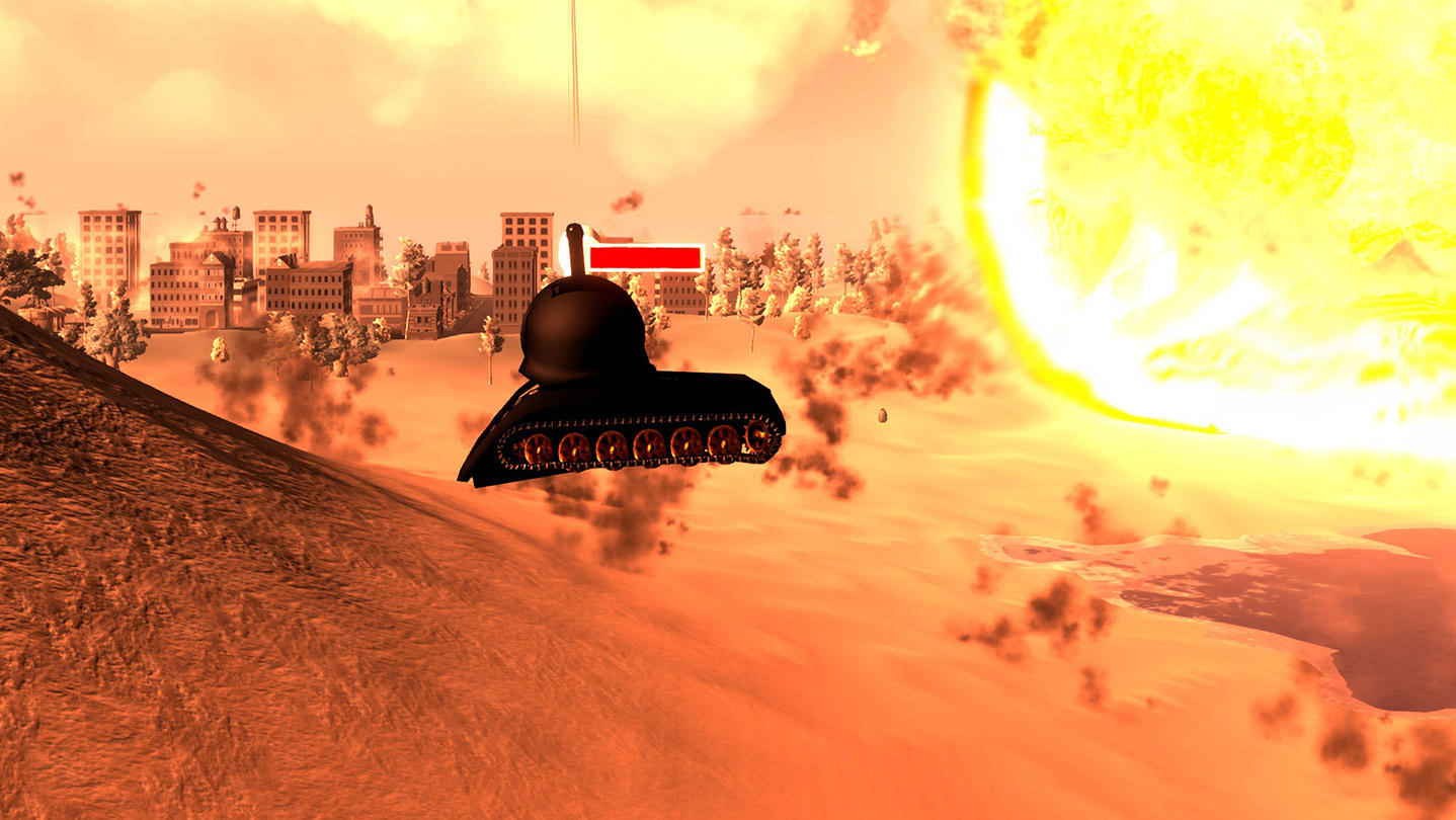 Multiplayer tank game with a mad weapon arsenal and tactics, different levels and game modes, ballistics, nukes, napalm, bigger nukes, air and anti-air weapons and personified tank characters with special abilities.