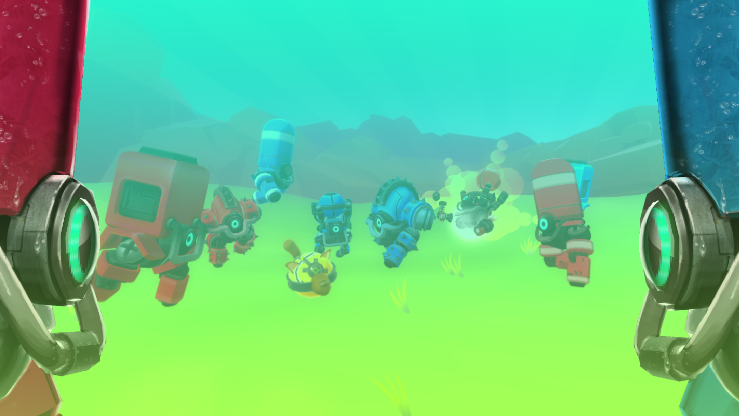 King Of The Hill gets a bit of a twist. This co-op mode finds the bots defending the King Ball from an onslaught of zombots that want to kick him out of his courtly circle.