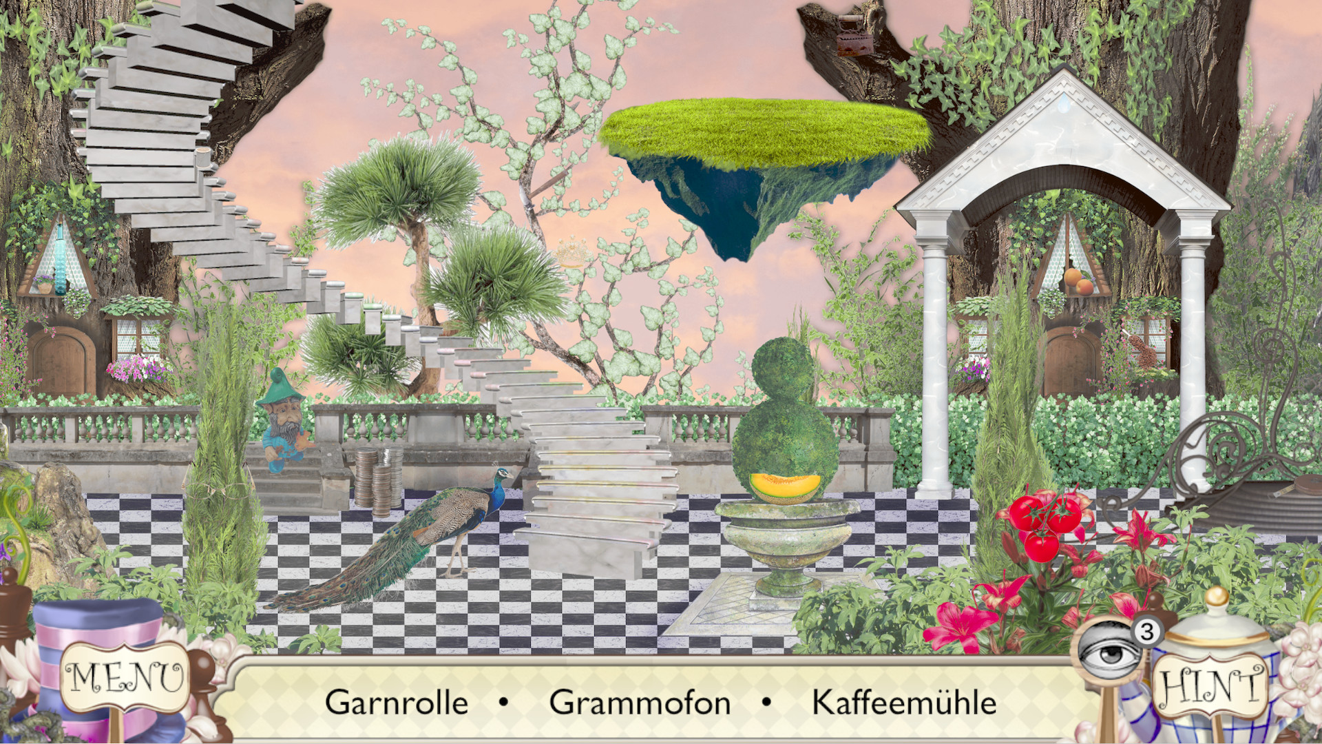 Ein gemütliches Abenteuer mit versteckten Objekten im Wunderland. Bunte 360-Grad-Szenen, Animationen und 3D-Visuelleffekte machen dein Abenteuer lebendig und spaßig! Scrollen, zoomen, Hinweise nutzen; ohne Stress, nur Erkundung.