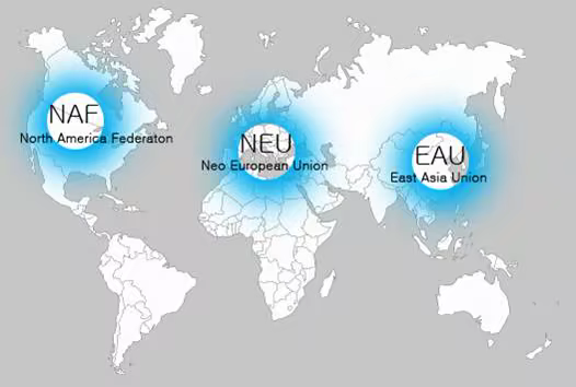 The world economy is turned into three big bloc economies; North America Federation (NAF), Neo European Union (NEU) and East Asia Union (EAU) in 2025.