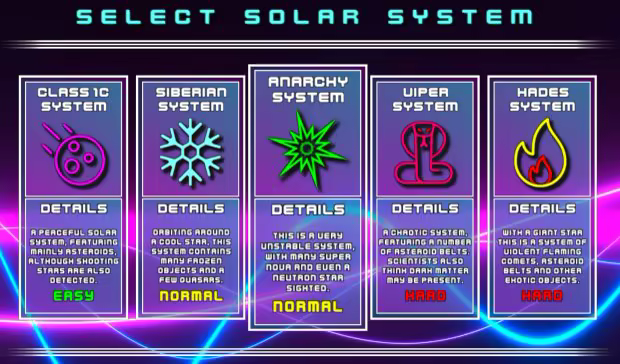This is a peaceful solar system, featuring mainly asteroids and shooting stars.