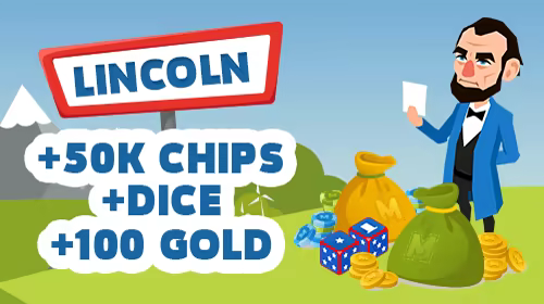 By purchasing this content, you get the Lincoln character, Lincoln dice, 100 gold and 50.000 chips.