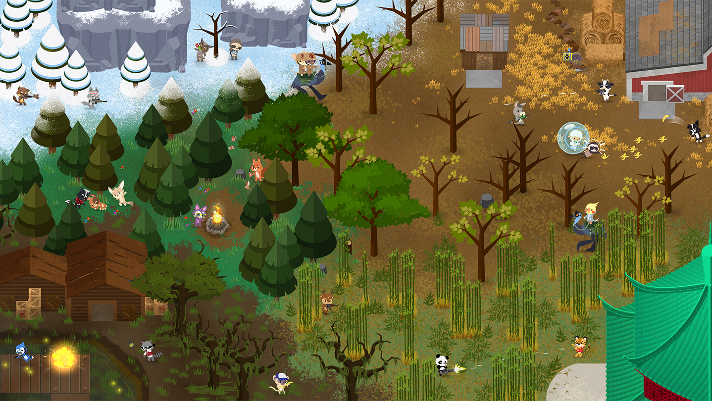 • Different Stripes for Different Fights: Collect hundreds of animal breeds and customize them with thousands of cosmetic items, weapons, outfits, and even umbrellas!