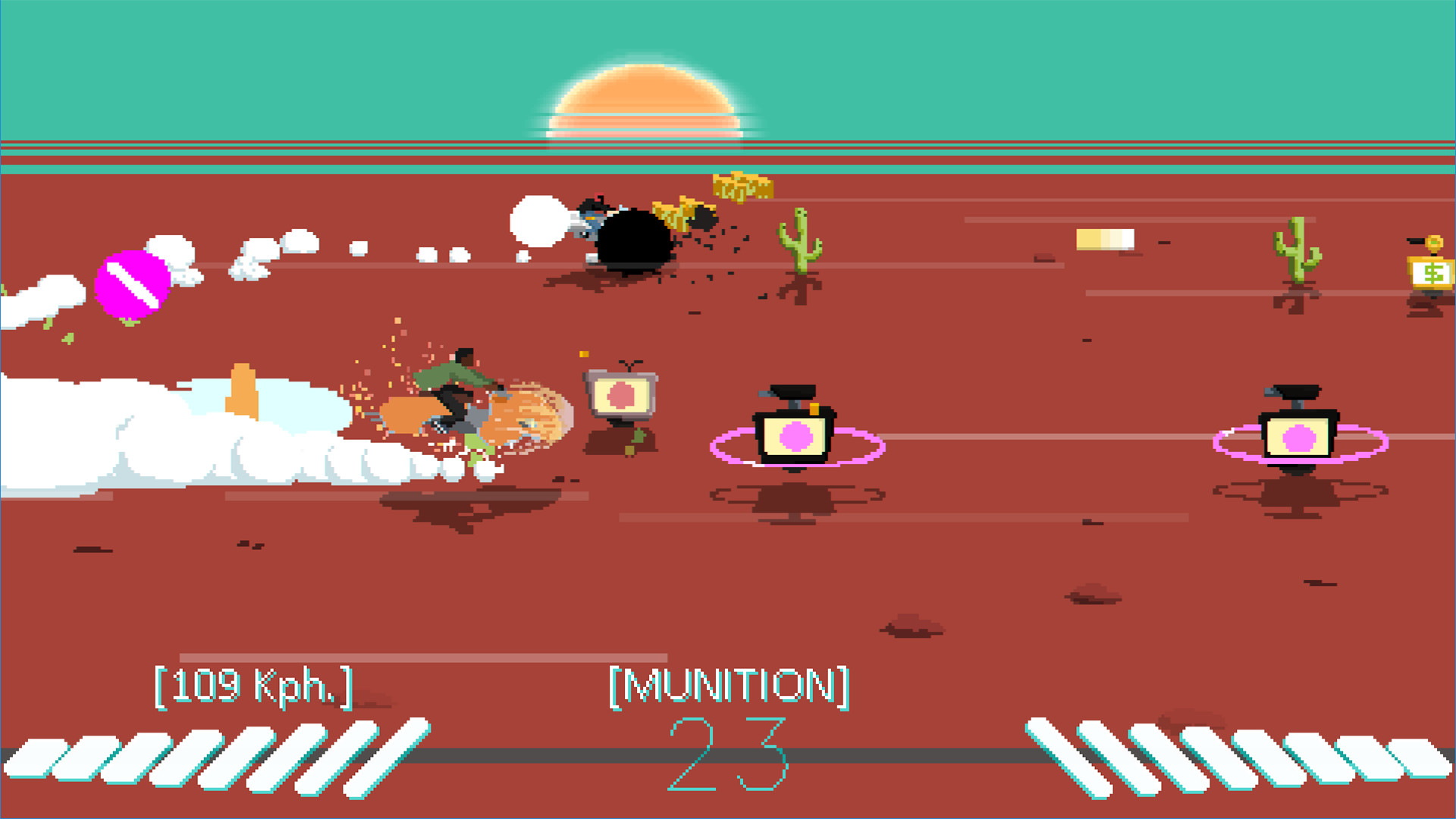 Du bist ein hungriger, junger Hoverbike-Rennfahrer, der von der Erde runter will, bevor sie E-X-P-L-O-D-I-E-R-T. Jage nach Kopfgeldern, schummle bei Rennen und mach alles, was du tun musst, damit du zum Mars gelangst und den Grand Prix gewinnst.