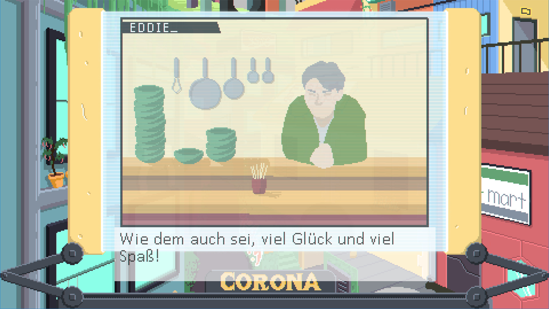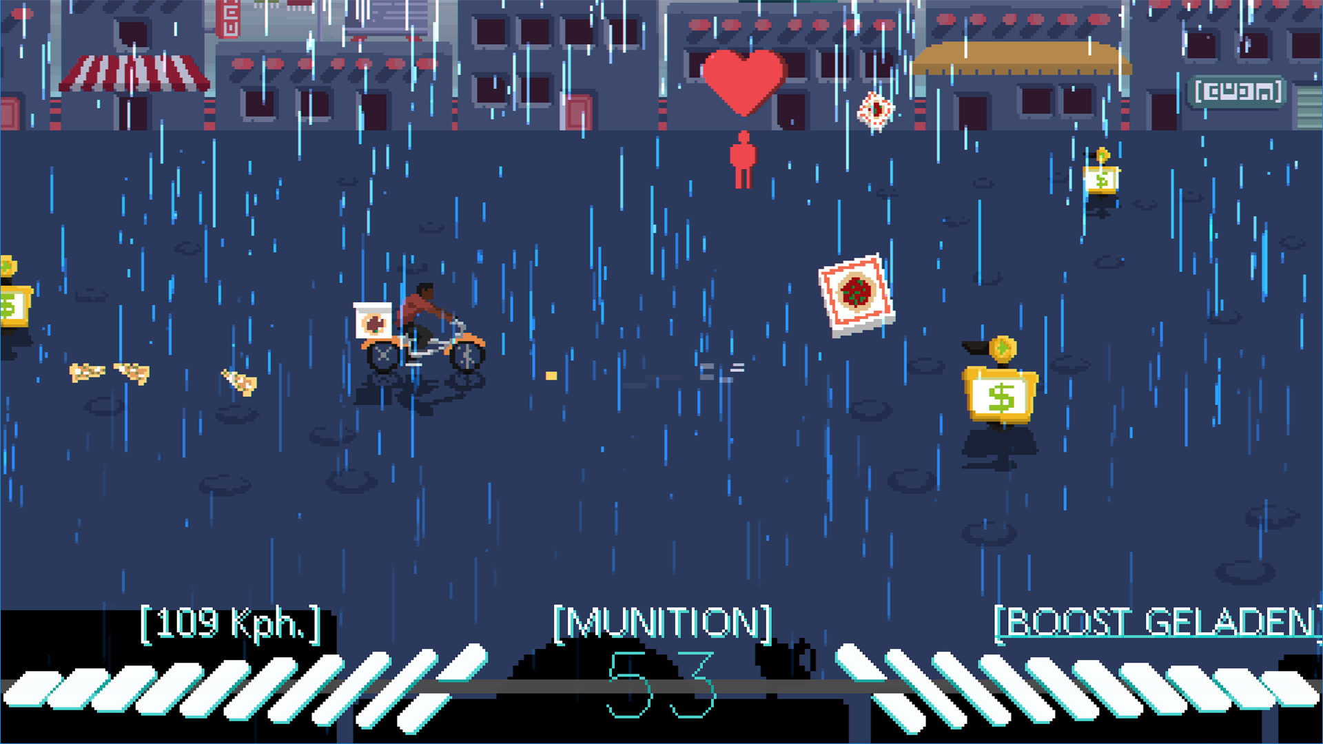 Du lieferst Pizza aus, sammelst Waffenteile, jagst nach Kopfgeldern und findest unterwegs ein paar Fans. Zwischen den Rennen erkundest du bunte Städte, in denen du dein Bike reparieren und aufwerten kannst, die lokalen Speisen ausprobieren und dir deinen Weg durch Gangster, Kopfgeldjäger und allerlei interessanter Personen freikämpfen kannst - gerade so viel, dass ein anständiges Mahl dabei rausspringt und dein Bike weiterläuft.