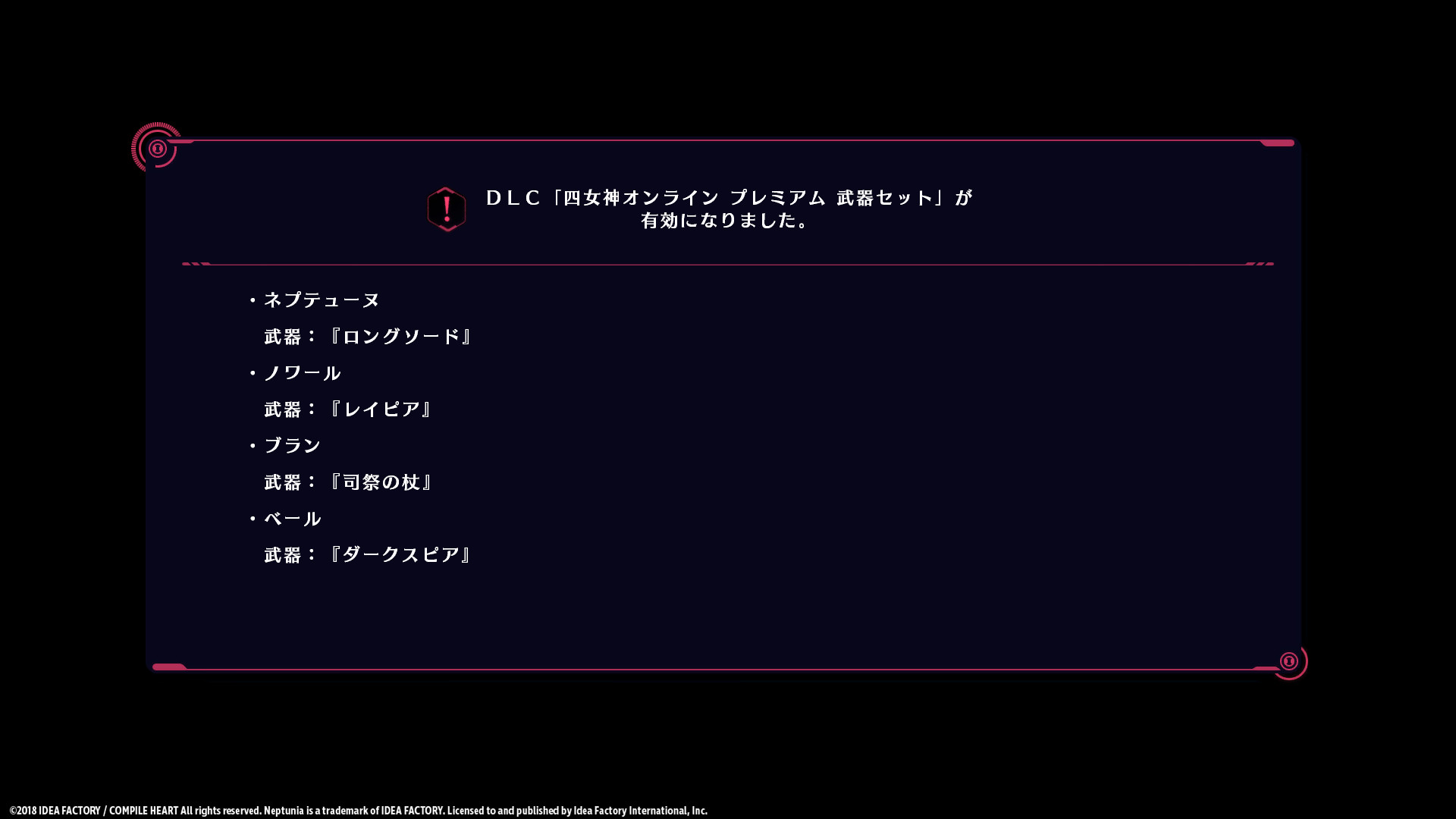 新次元ゲイム ネプテューヌVⅡR四女神オンライン プレミアム 武器セットをダウンロード