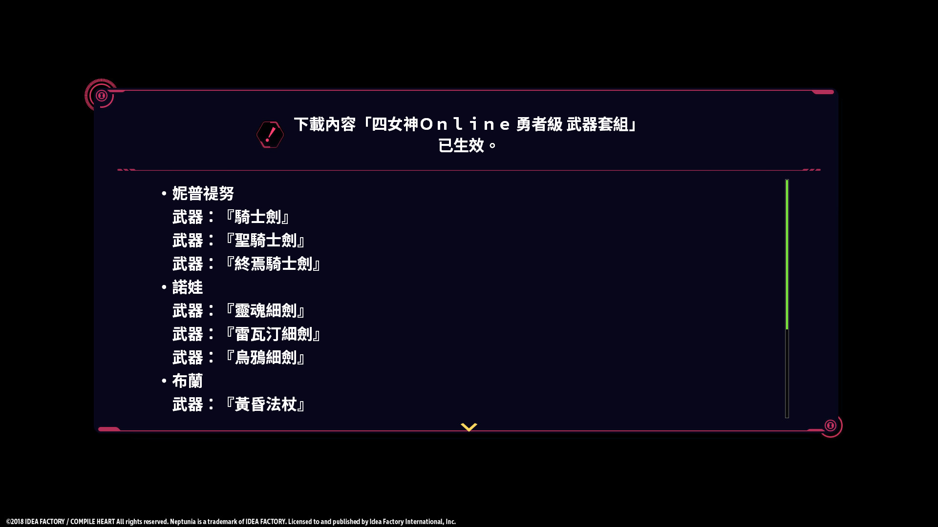 英雄雖不問出處,但英雄卻需要武器打倒「黝暗女神」!「四女神Online 勇者級武器套組」為四位女神各提供三種武器進行選擇。