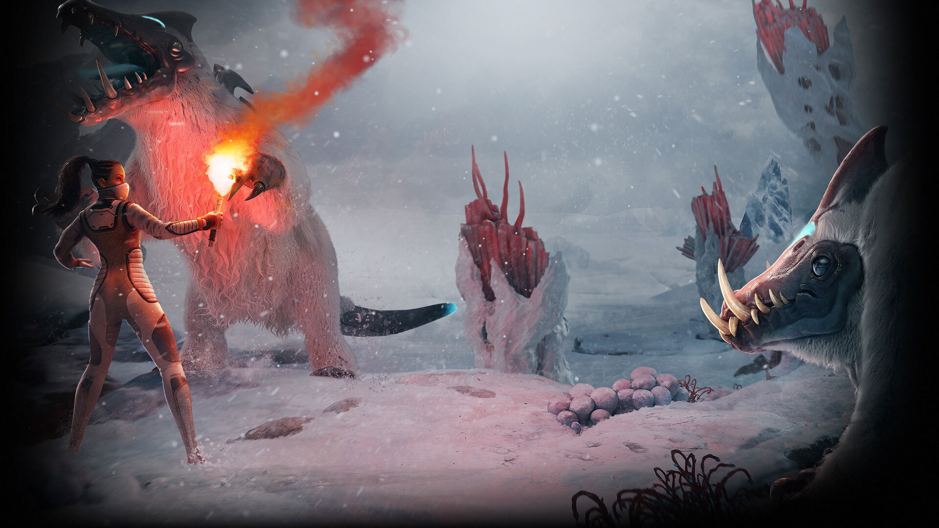 Survive the harsh climate by constructing extensive habitats, scavenging for resources, and crafting equipment. Blast across the snowy tundra on a Snowfox hoverbike. Cruise through enchanting and perilous biomes in your modular Seatruck.