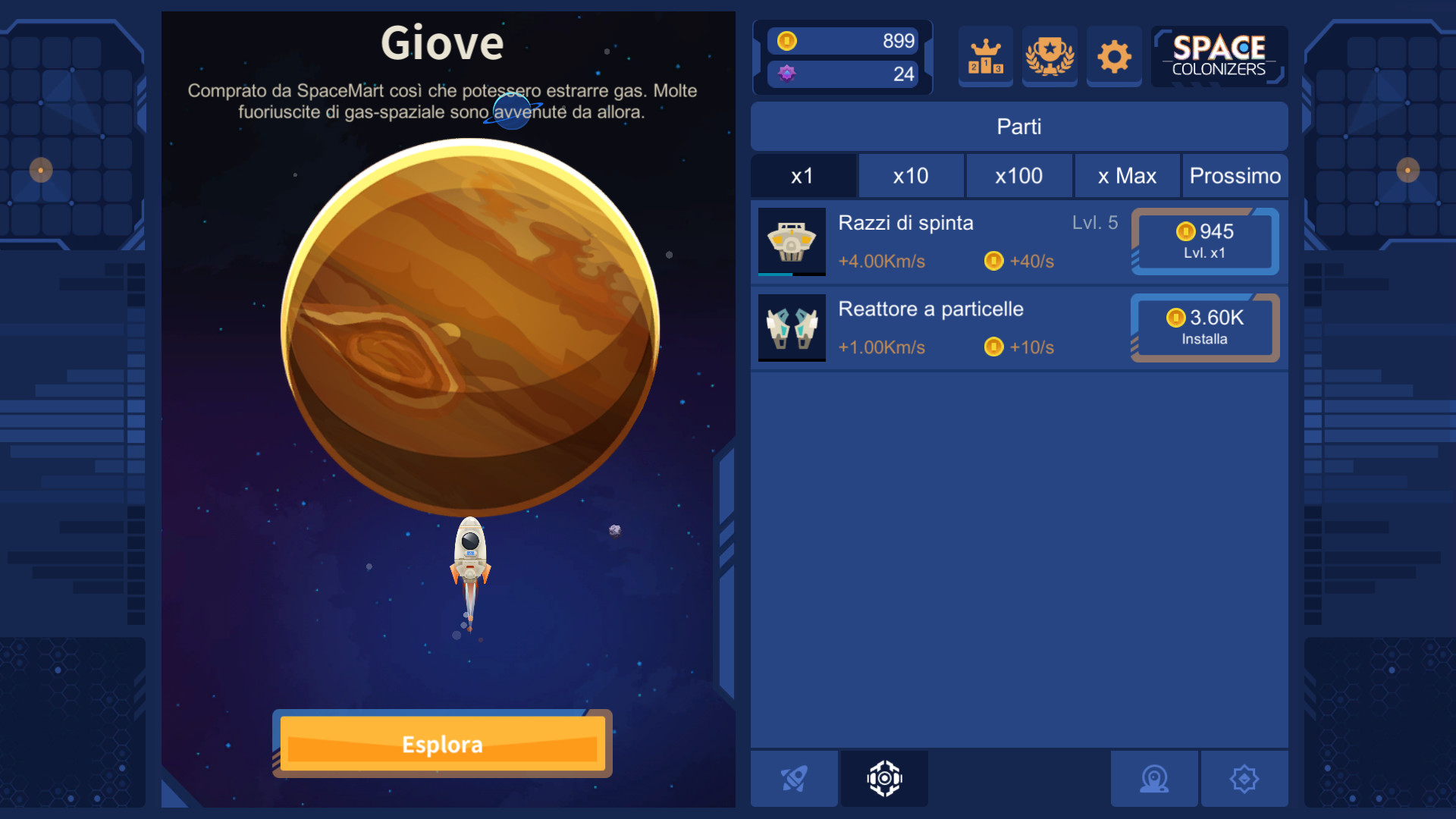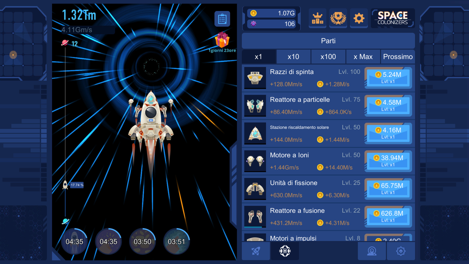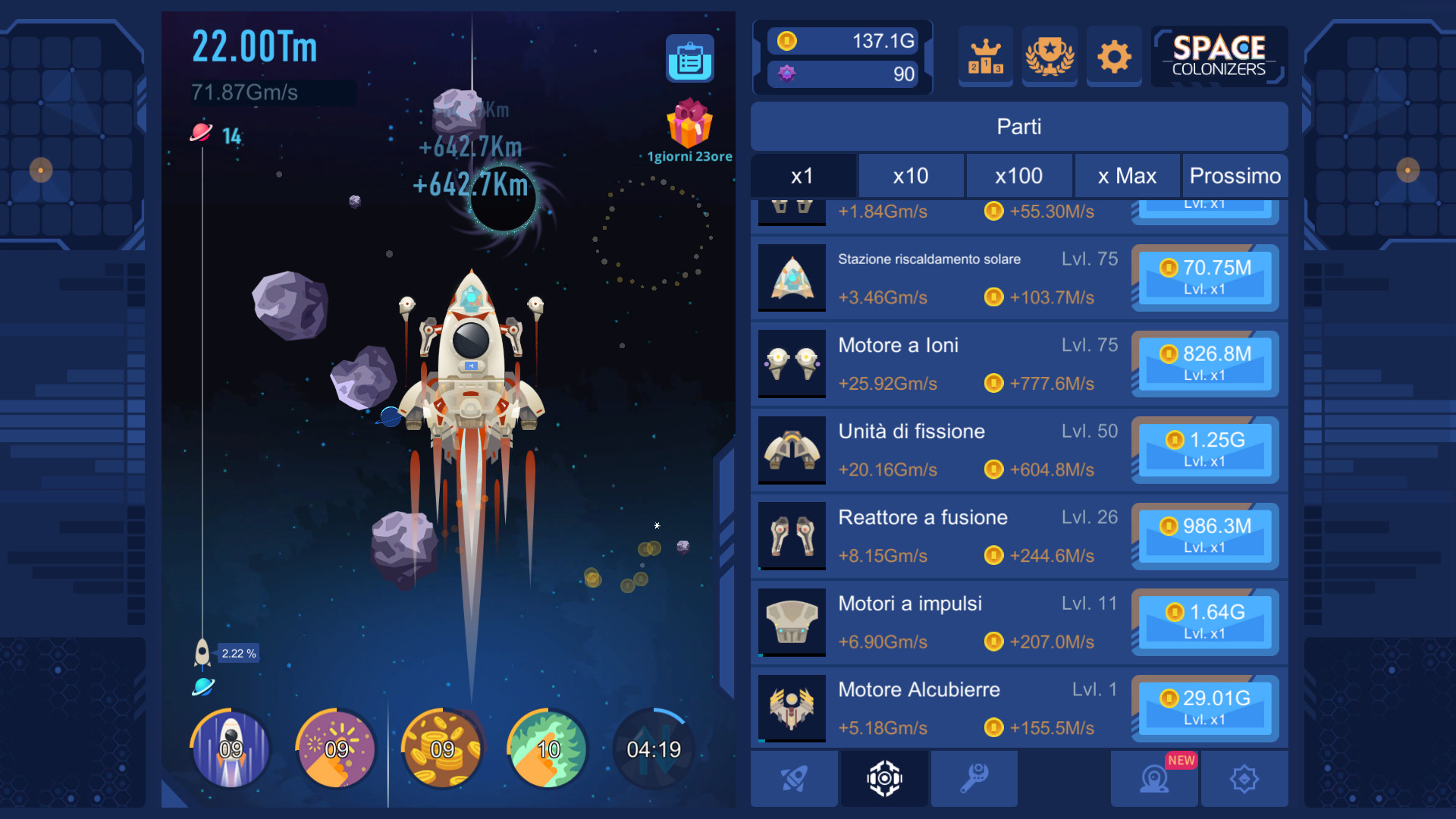 Space Colonizers è un gioco clicker incrementale inattivo, e anche un gioco di simulazione e strategia. All'interno del gioco puoi: