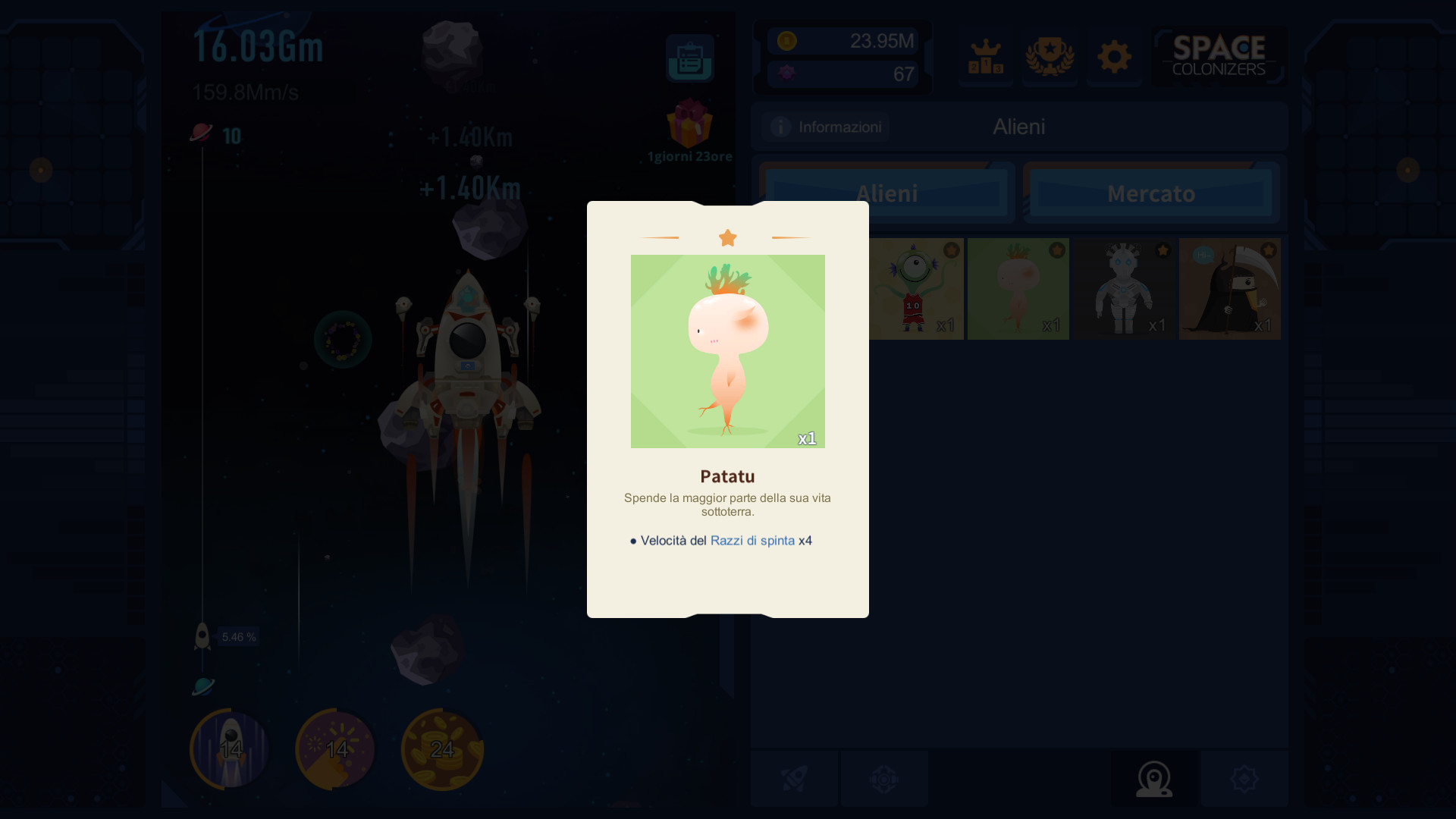 Per esplorare ulteriormente, attraverso pianeti più particolari e incontrare altri alieni carini, devi installare costantemente parti, aggiornare veicoli spaziali e costruire edifici. Non dimenticare di usare le tue abilità per farti volare più veloce! Mentre voli, potresti incontrare un buco nero che può passare istantaneamente nello spazio e nel tempo, permettendoti di spingere rapidamente attraverso l'universo. Quando incontri pianeti adatti all'abitazione umana, non dimenticare la tua grande missione, torna sulla terra,