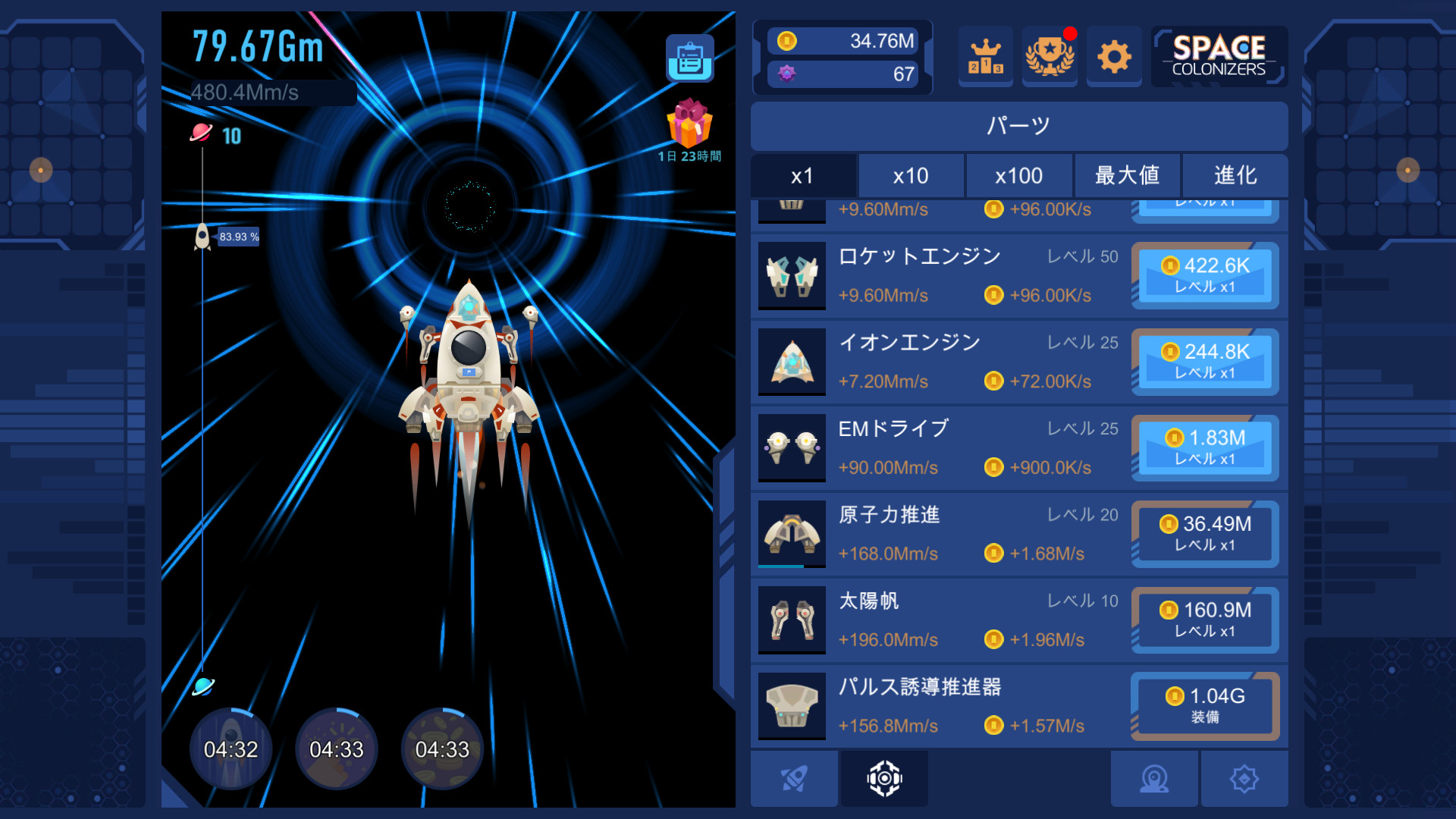 *前進と同時に宇宙船の性能をグレードアップできます!