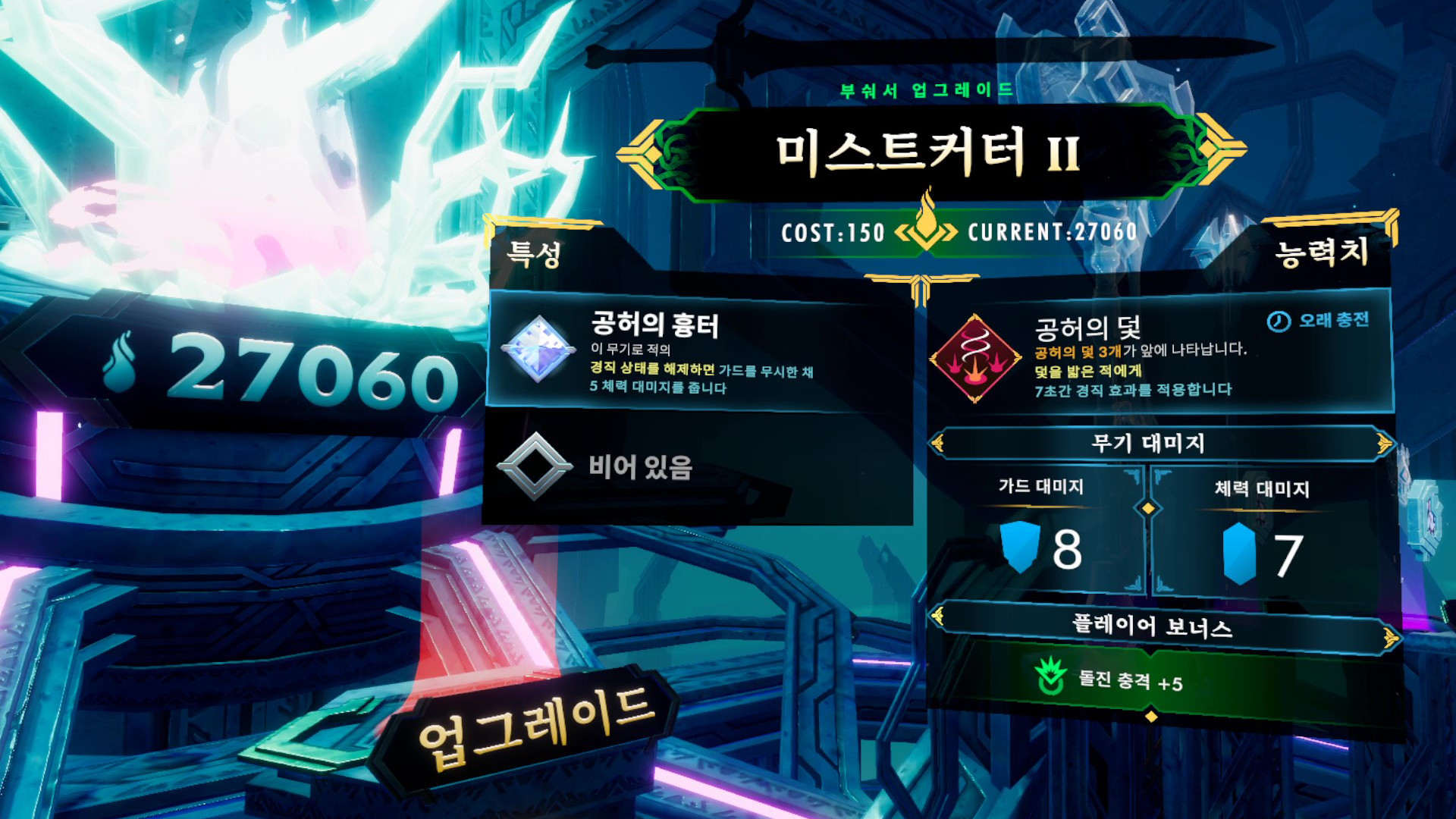 로카가 몰락했습니다. 한때 에테르라는 마법의 힘으로 가득한 문명이었지만, 로카인은 원인을 알 수 없는 재앙에 의해 파괴되었습니다. 이제, 괴물들과 뒤틀린 영혼들이 이 바스러진 폐허를 배회하고 있습니다. 마지막 남은 룬 기사로서, 여러분만이 이 공포를 물리칠 수 있습니다. 신비한 룬스미스의 도움으로 여러분은 캠페인을 완수하기 위해 필요한 무기를 제작할 수 있습니다. 여러분은 로카를 구원할 용사입니까?