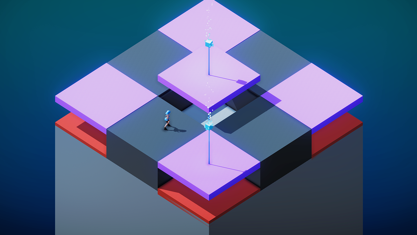 • Shift through the worlds and reach the blue cube (or more of them!)