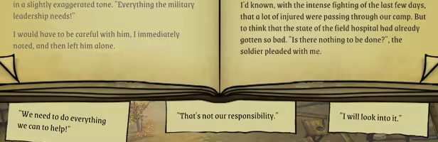 Your decisions between the needs of the soldiers and the demands of the superiors result in a unique story each time. But your choices don't change the war. They change the life of your soldiers.