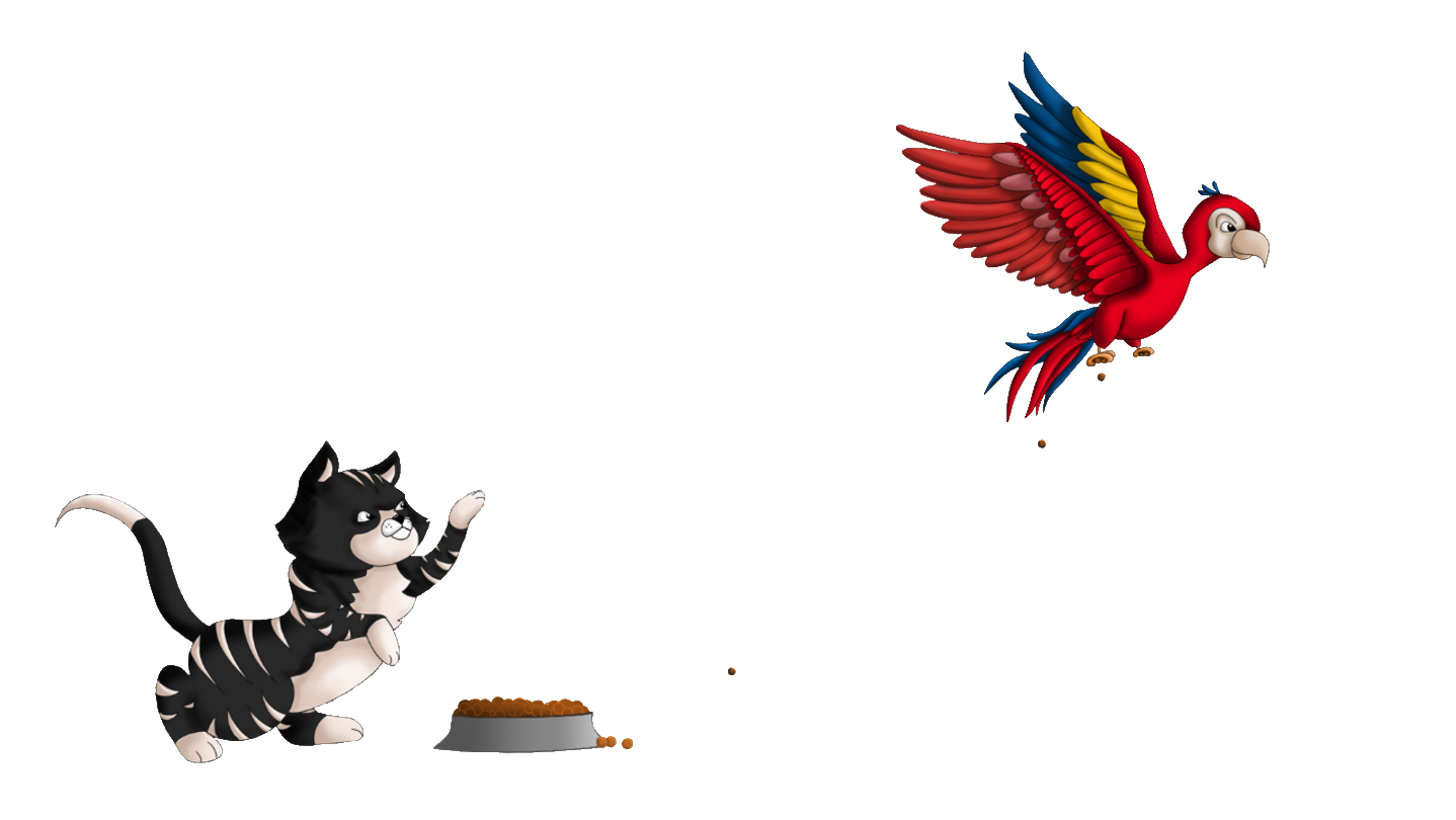 Your pesky parrot has stolen all the cat food and hidden it around the house! Find it and knock it down from the parrot’s precarious perches so your cat can eat.