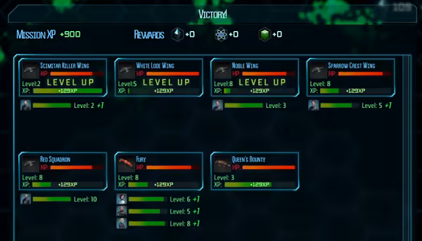 The victory screen now displays all crew members on each ship, if any, and the experience they gain. Crew members gain the same experience as the ship they are equipped to. This experience is for the crew member personally, and it stays with them even if you assign them to a new ship.