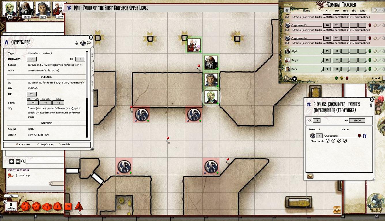 • Tokens for each encounter are all pre-placed in starting locations on the map. You can edit these on the fly.