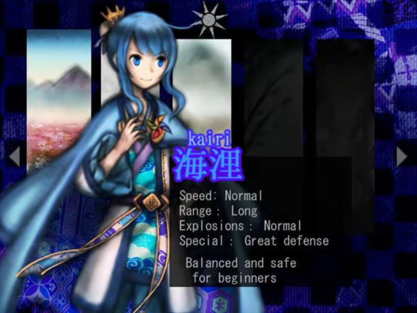 While her movement speed is quite fast, her shot range is relatively short and she is often prevented from defeating enemies by thick waves of bullets.