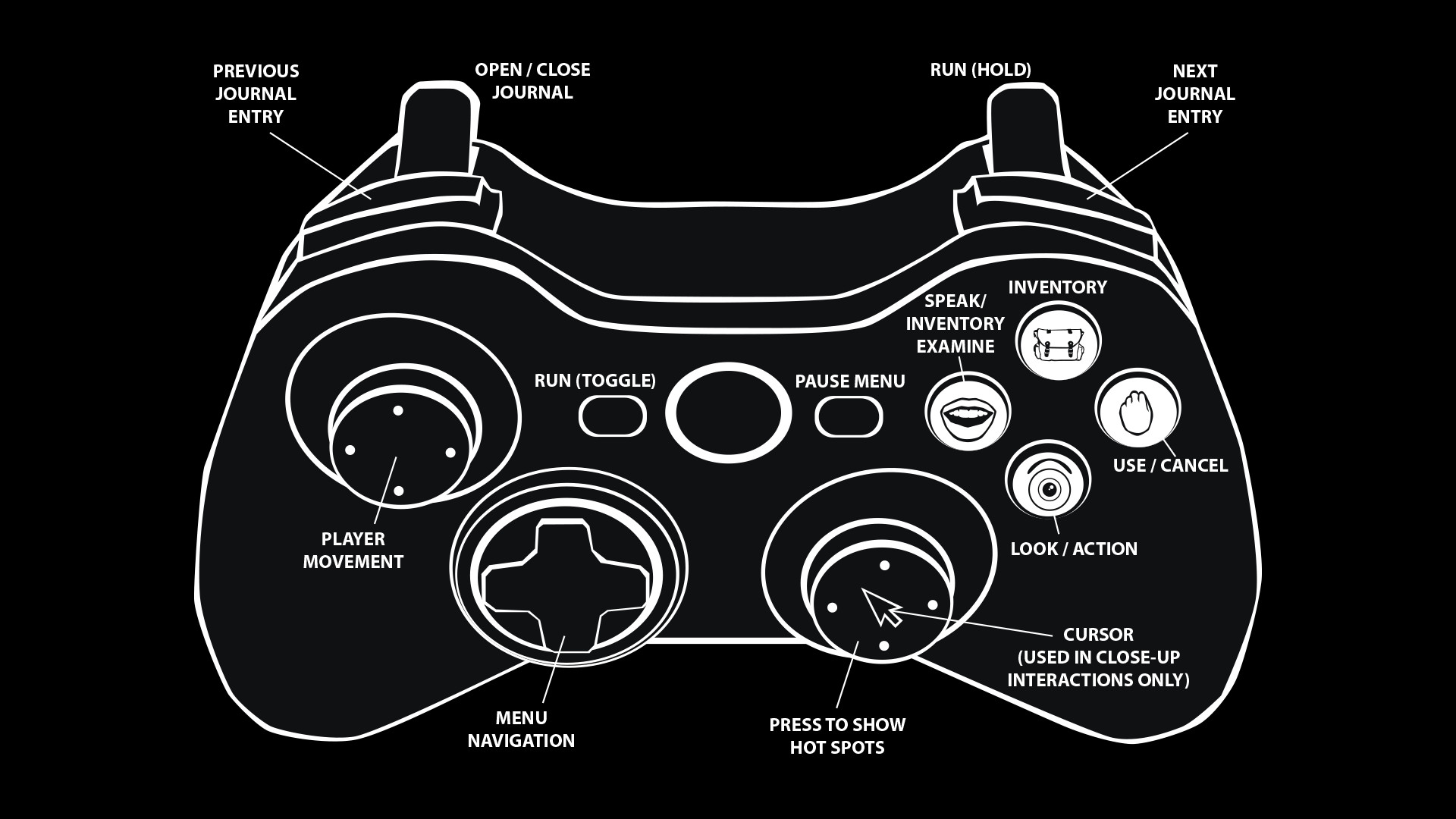 • Multiple methods of input that the player can choose from: full point & click navigation (recommended), direct input with camera relative controls, and direct input with player relative controls (tank controls)