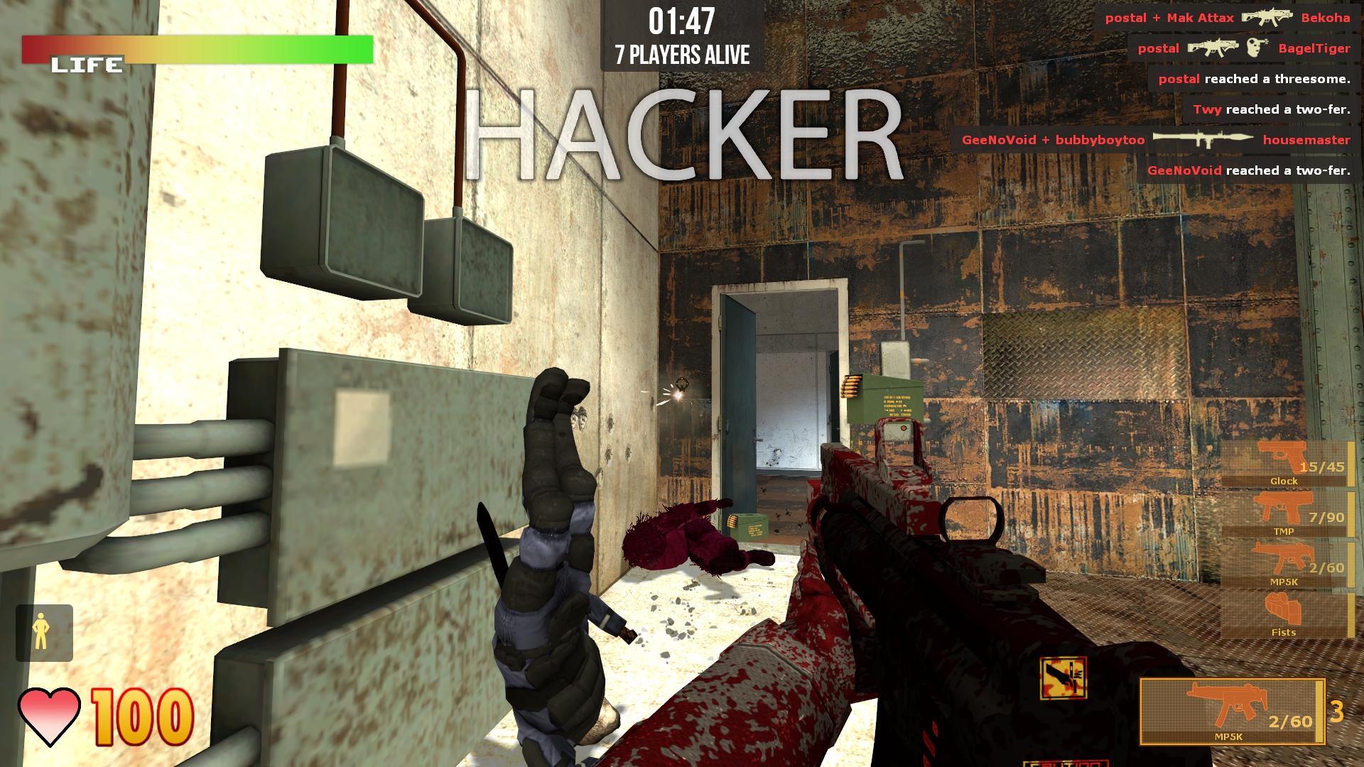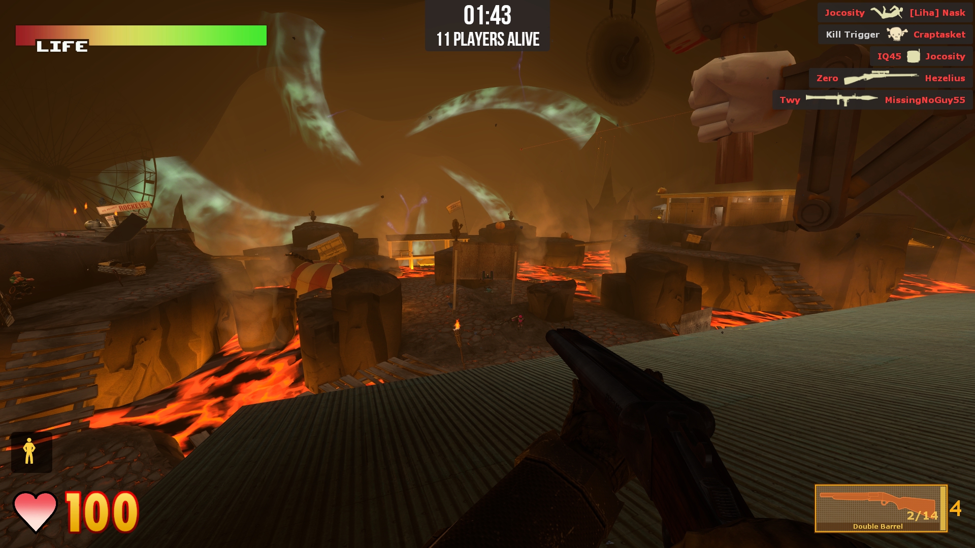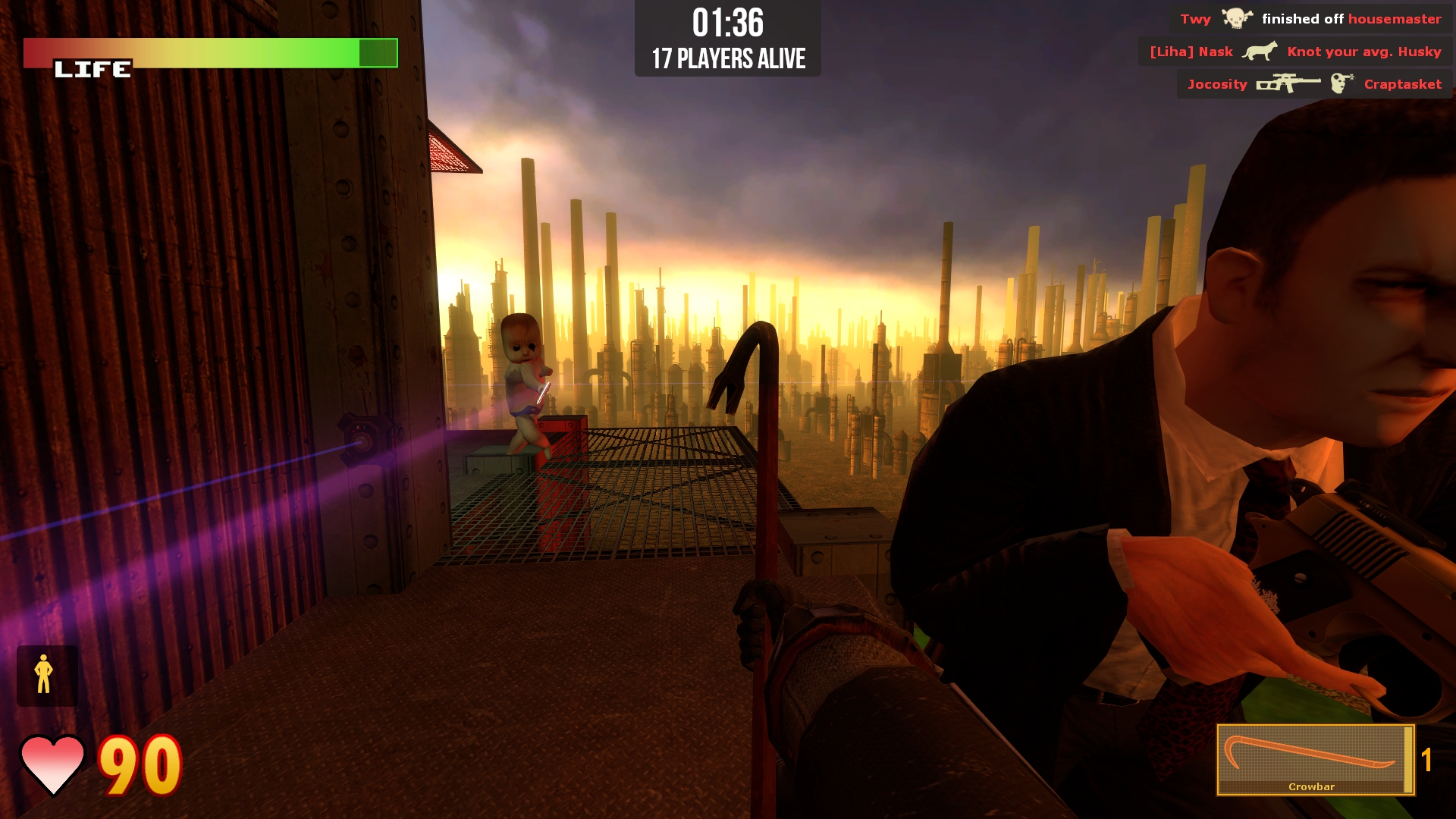 • Rocket Crowbar - It’s a crowbar! With a rocket on the end! Swing it into players to send them flying, or use right click to fire drunken rockets at people. You can also hit the map itself to send yourself flying away for quick escapes.
