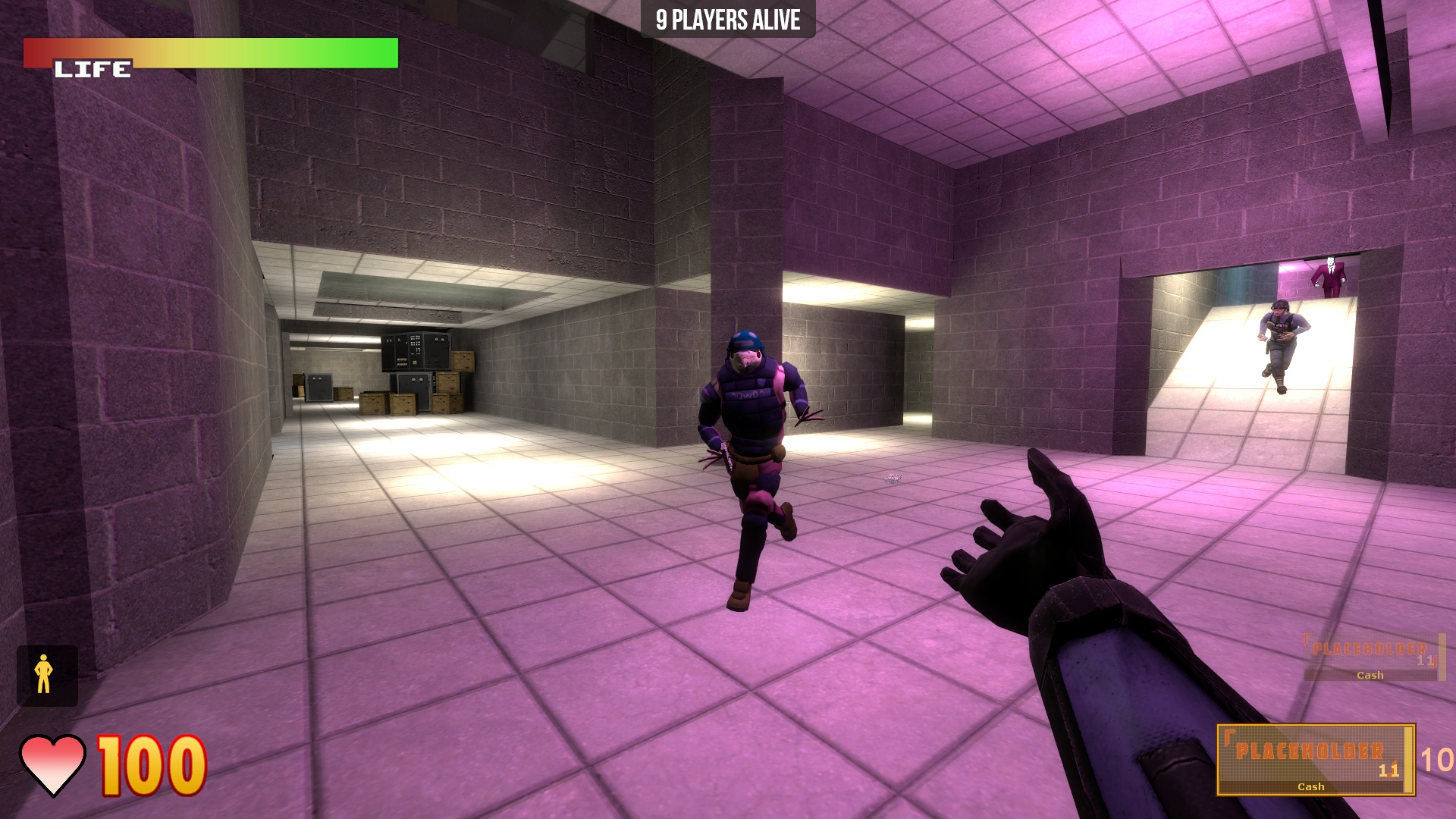 • Scientist Hunt - Inspired by the Half-Life 1 mod of the same name, this game-mode revolves around competing to get the most points by killing scientists. This can be either teamplay or individual, and features a variety of scientist types each worth different point values. Some will attack you, some try to evade you, and others simply run around aimlessly.