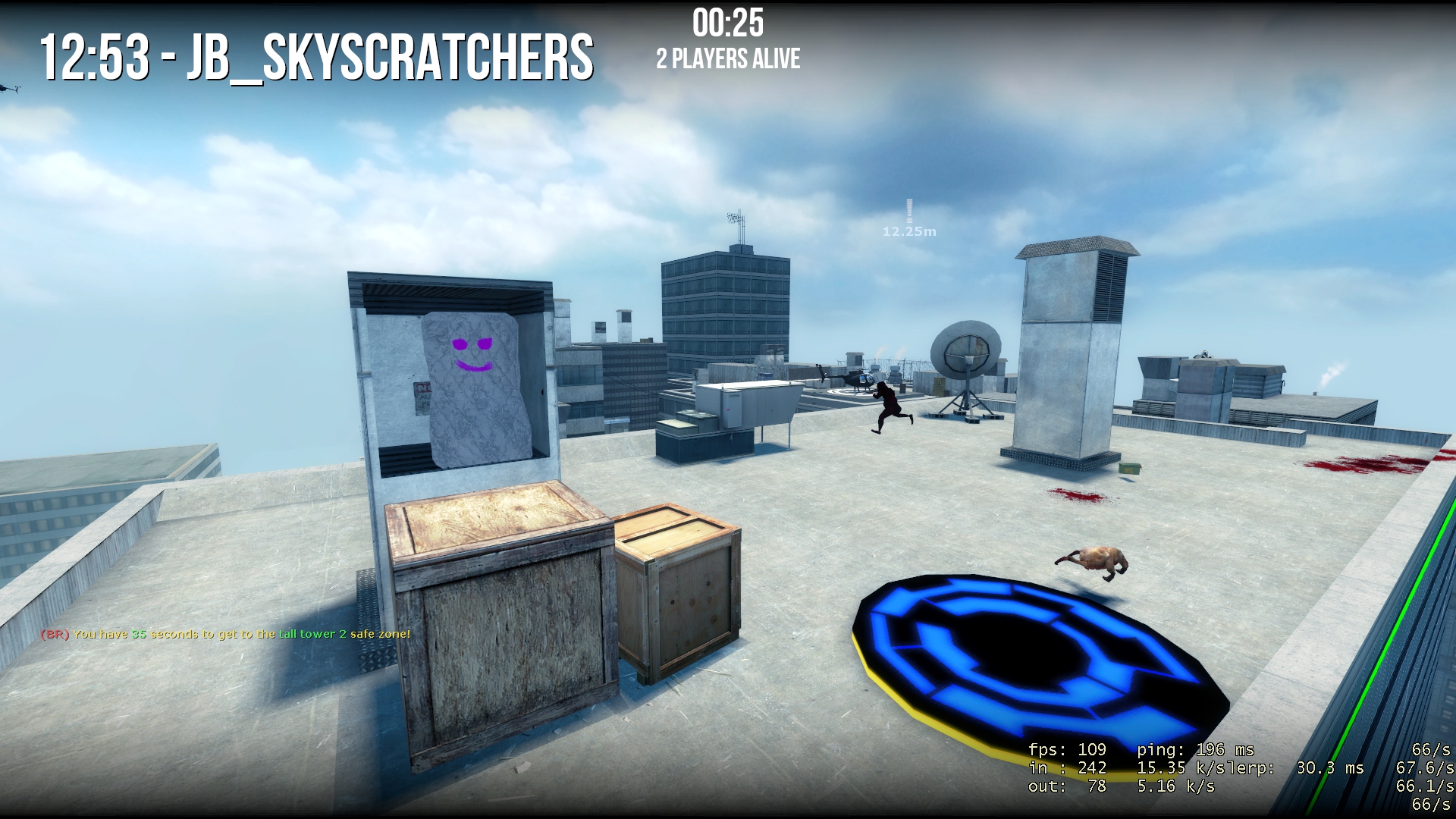 • Battle Royale: Basert, og videre en utvidet utgave av dens debyt i "Jaykin Bacon" for Half-Life 1, hvor hver runde starter med alle spillerene med kun ett tilfeldig våpen å bruke ut av en samling av mange. Målet er for spillerne å være sistemann som står igjen som den eneste overlevende. I tillegg vil tilfeldige valgte steder på kartet bli valgt ut som en sikkerhetssone, for ekstra press på spillerne og for å få dem mer samlet, og derfor unngå en runde av Battle Royale fra å vare for evig eller fra å ende uavgjort. Men med dette kommer også tilfeldige "mutators"; spesielle hendelser som endrer reglene på spillet for å holde det "fresht" og interessant, og for å legge til ekstra spenning i spillet. (Eksempel: En "mutator" som tvinger alle til å kun bruke et spesifikt våpen, eller en type hvor du kan bare gå baklengs.)