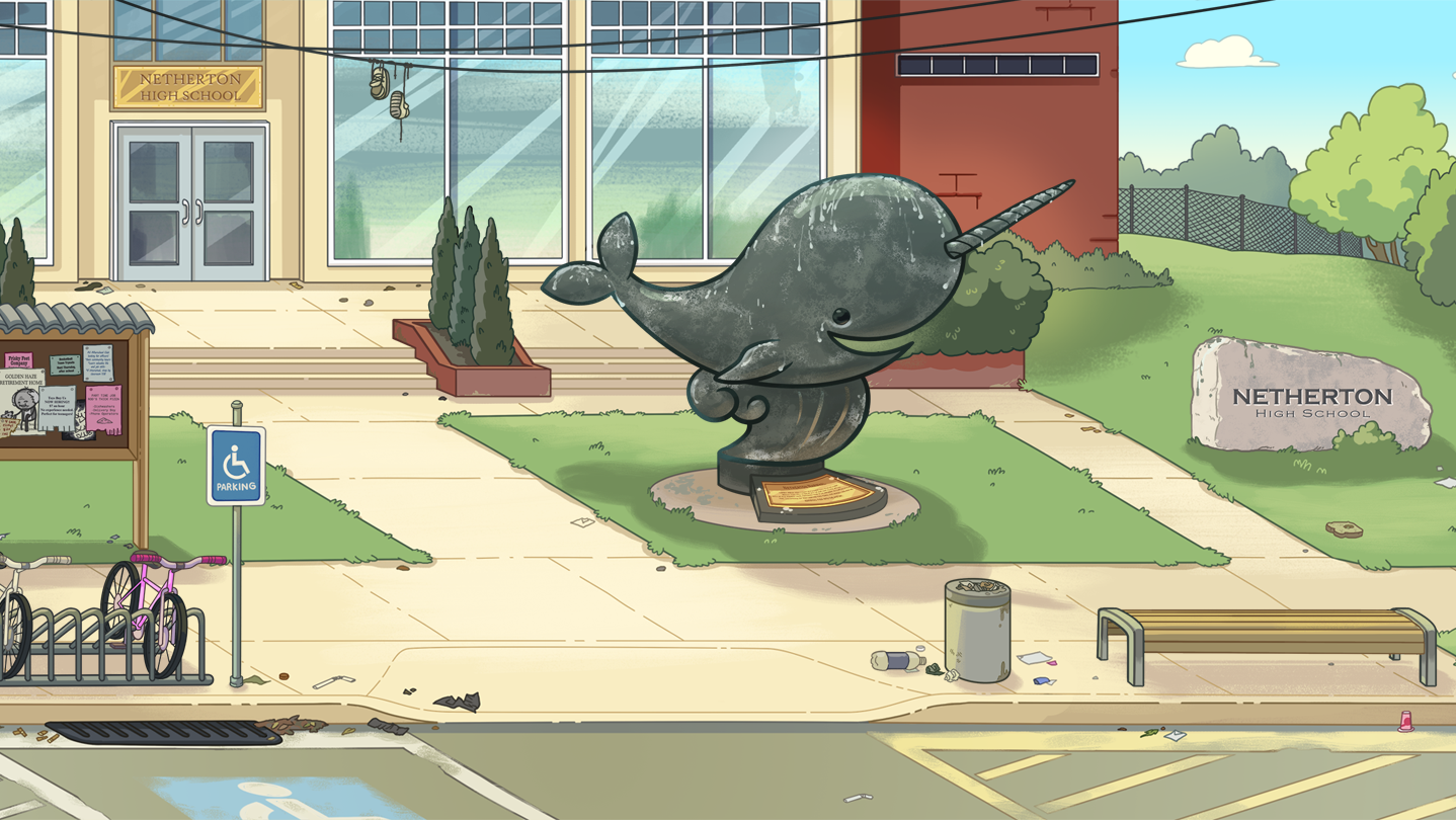 Netherton is… Charming, if you look in the right places! Explore the town and discover a ton of different clothes, easter eggs and hidden details while you avoid death to freaks and bullies! Unlock special achievements for how good (or bad) you are at exploration!