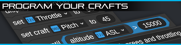 Easily drag and drop code blocks to program your crafts to log telemetry, automate them, design your own MFD touch screens, etc. With Vizzy, a programming language designed specifically for Juno: New Origins, you can expand the capabilities of your crafts while learning programming, maths, physics, etc.