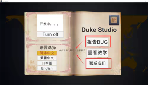 A:点击游戏首页的“OPTION”,页面中有一个“报告BUG”按钮,在你网络通常的条件下,报告会通过Email发给老冯。此外,点击“联系我们”选择进官方群、访问官方微博或是直接加老冯QQ都可以报告BUG。