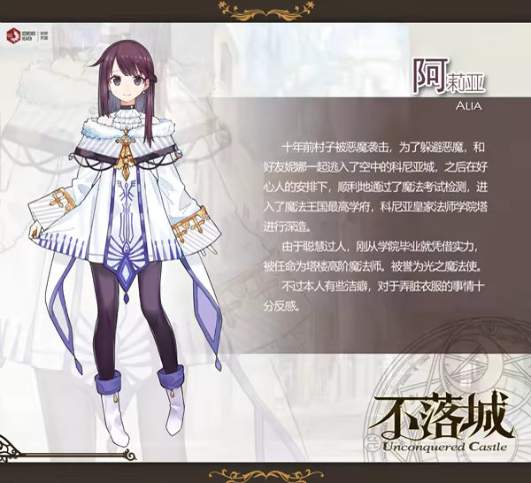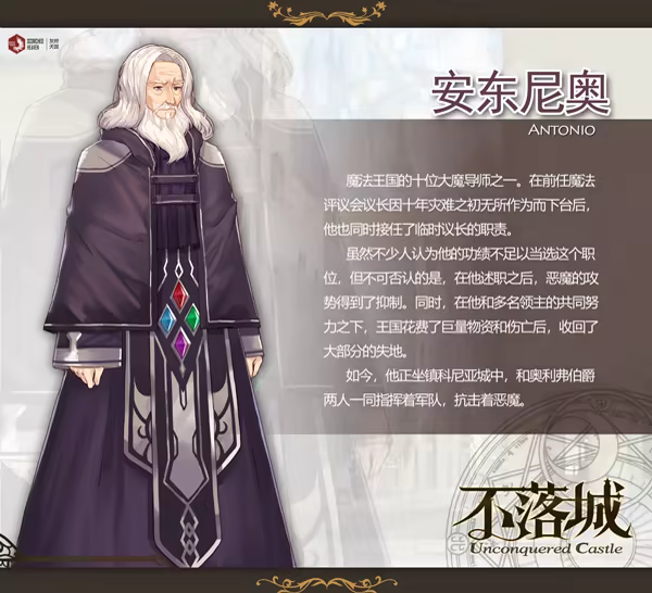 于是在大魔导师安东尼奥的带领下,光之魔法师阿莉亚接受了不落之城 - 科尼亚的邀请,成为了裁决之光塔的首席法师,并因此展开了一场和“恶魔”的斗争。