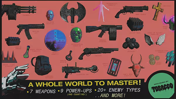 • Seven deadly weapons: Axe, Hand Cannon, Machine Gun, Shotgun, Grenade Launcher, Chaingun, and Lightning Gun all have a very distinct feel and round out a very formidable arsenal.