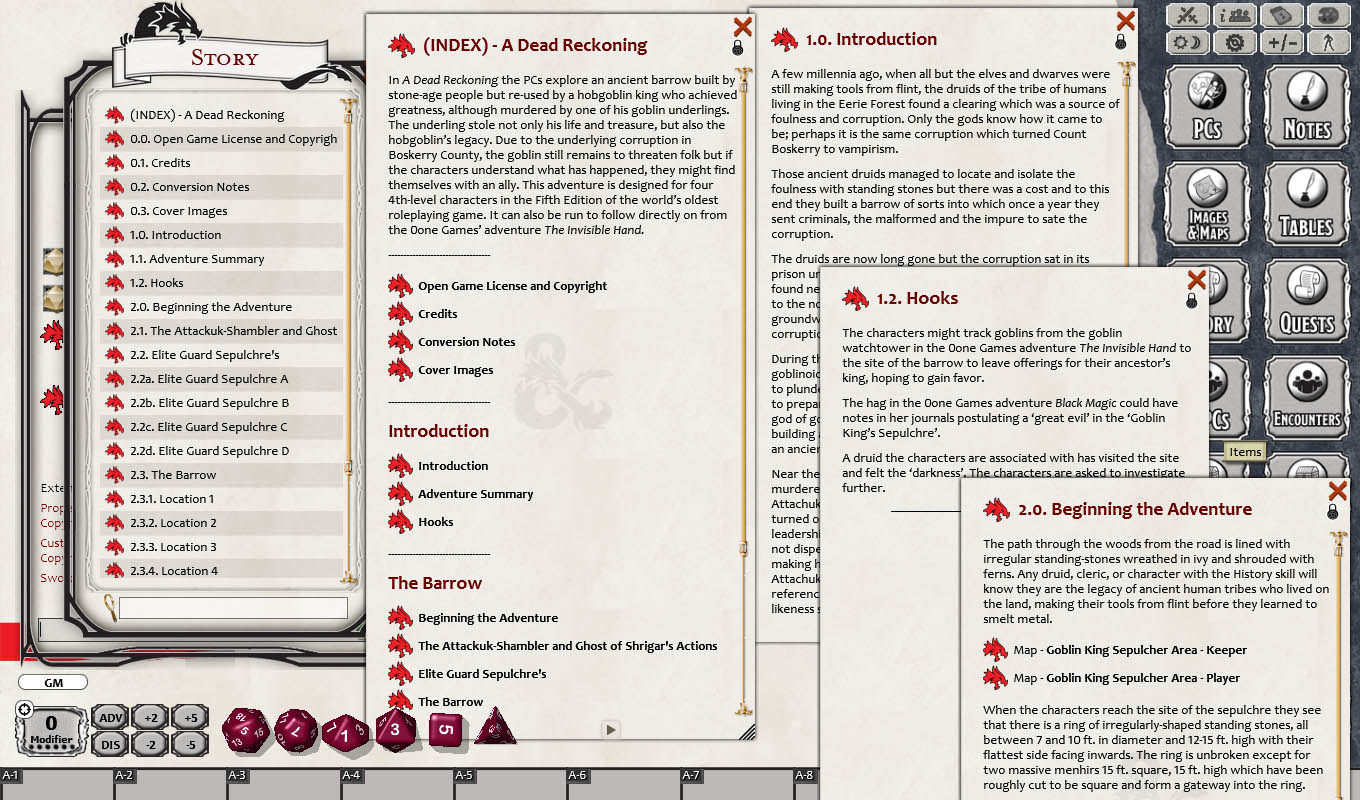 Requires: The free Fantasy Grounds virtual tabletop (VTT) software and the included 5E Compatible ruleset.