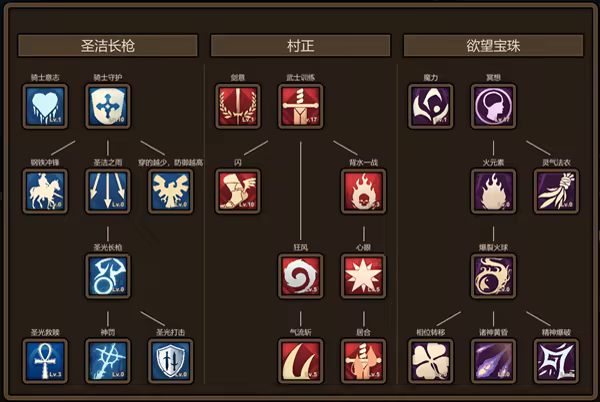 三条不同武器的技能树,让你的人物不断成长变强。