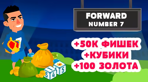 После покупки данного контента вы получаете в свою коллекцию персонажа "Футболист с "7" номером", "Кубики с "7" номером", а также 100 золотых и 50.000 фишек.