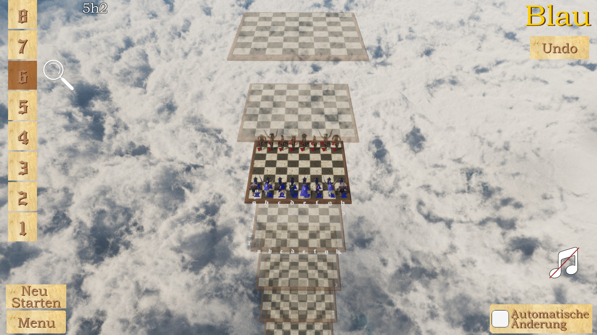 Das Schachspiel wurde als 3D wieder erstellt! In dieser Schachvariation können Sie mit vielen 3D Schachbrettern bis zu 8 Brettern Schach spielen.