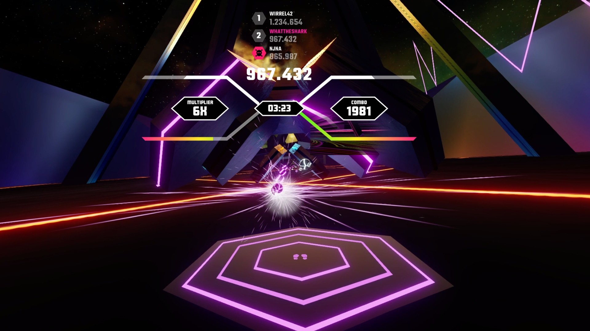 Synth Riders combines self-expression and active gameplay through a unique combination of dance and action. You’ll experience incredible music in a whole new way as your arms soar when riding our unique rail system. Meet friends in the Multiplayer Mode, climb the leaderboards, burn those calories, or simply focus on defining your own signature dance style!