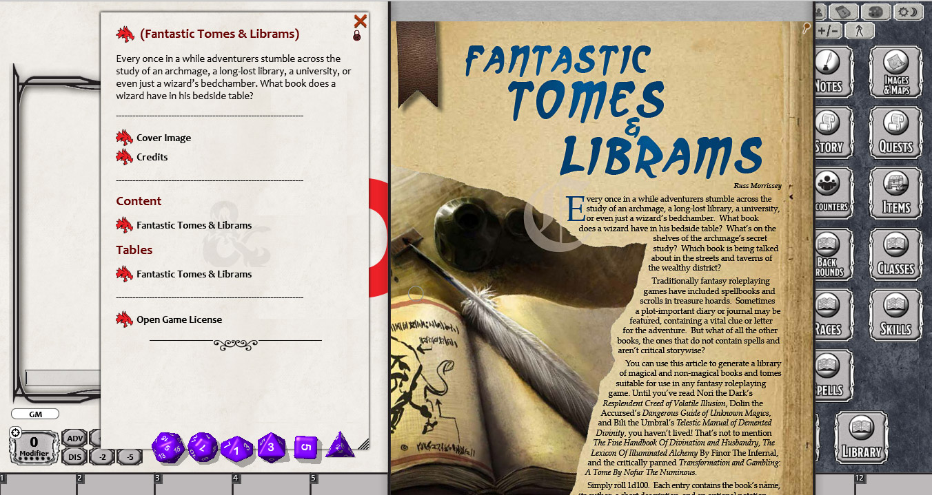 Requires: The free Fantasy Grounds virtual tabletop (VTT) software and the included 5E Compatible ruleset.