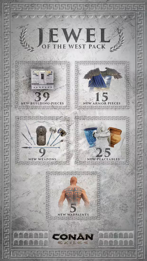 Get your hands on all new building pieces, placeables, weapons, armors and warpaints from the powerful kingdom of Aquilonia!