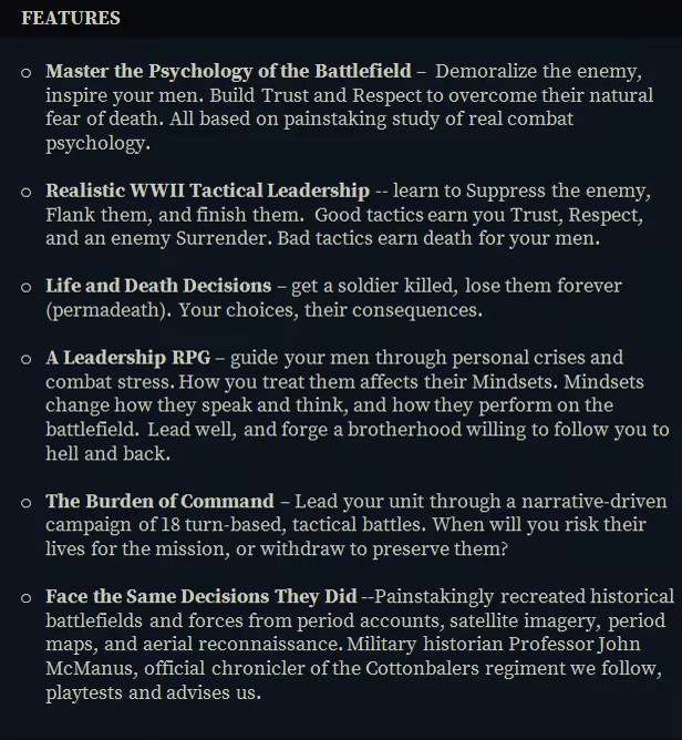 Can you lead? Burden of Command is an emotionally authentic tactical leadership RPG. You’re a company Captain in the historical Cottonbalers. Fighting psychology as much as bullets, you must build respect, trust, and battlefield experience to bring your brothers safely home.